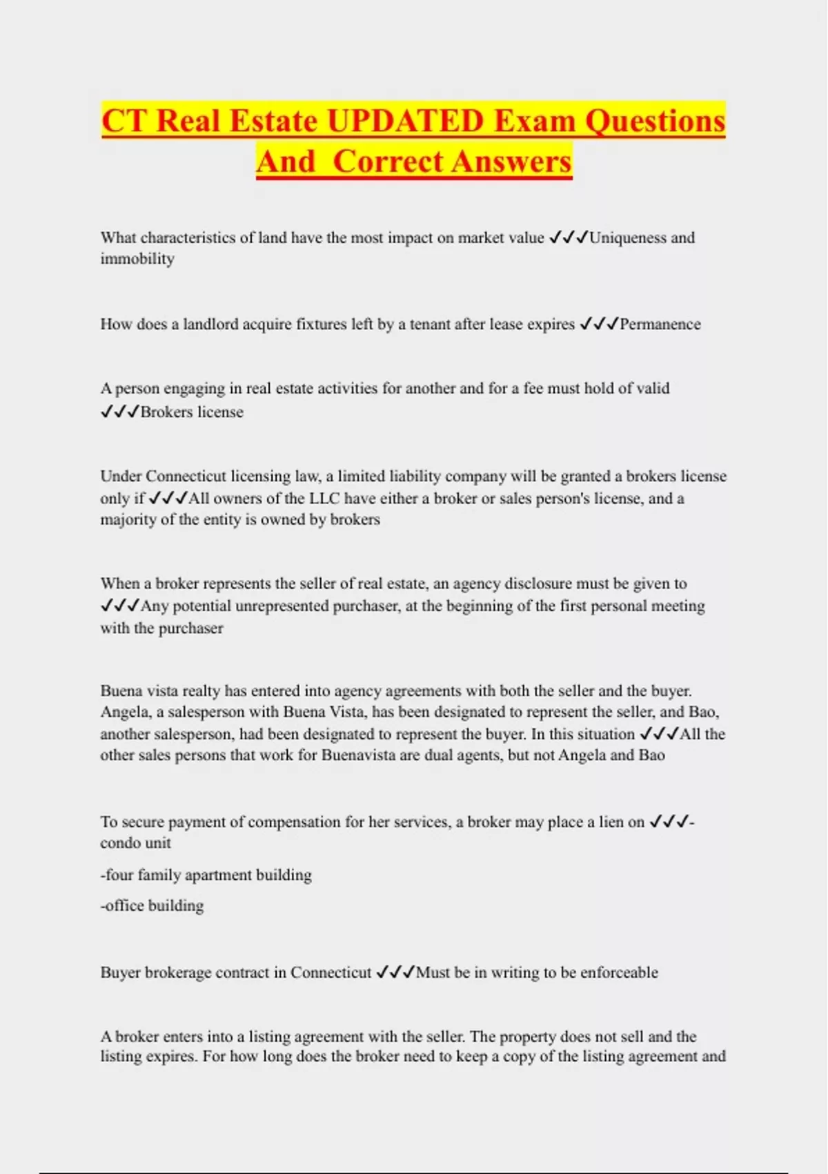 CT Real Estate Bundled Exam Questions WITH CORRECT Answers