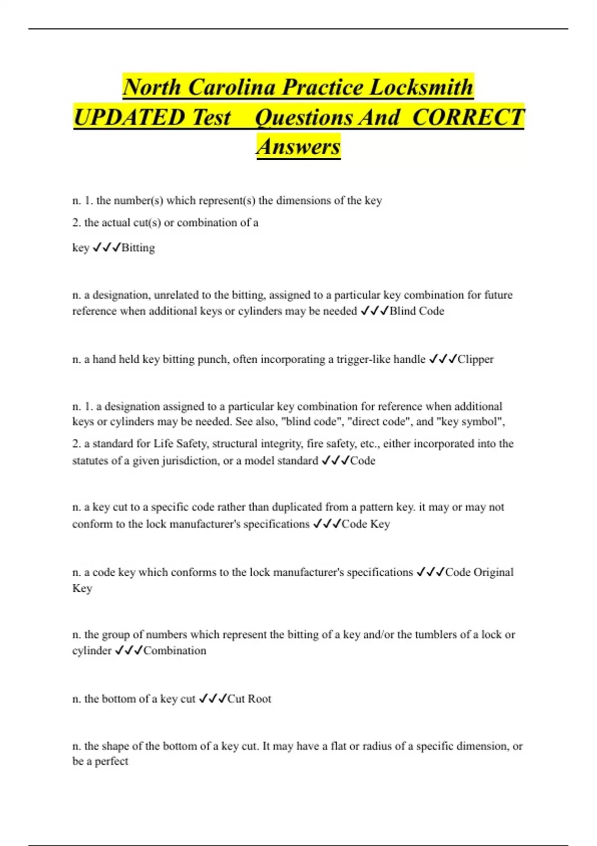 Locksmith Bundled Exam Questions WITH CORRECT Answers
