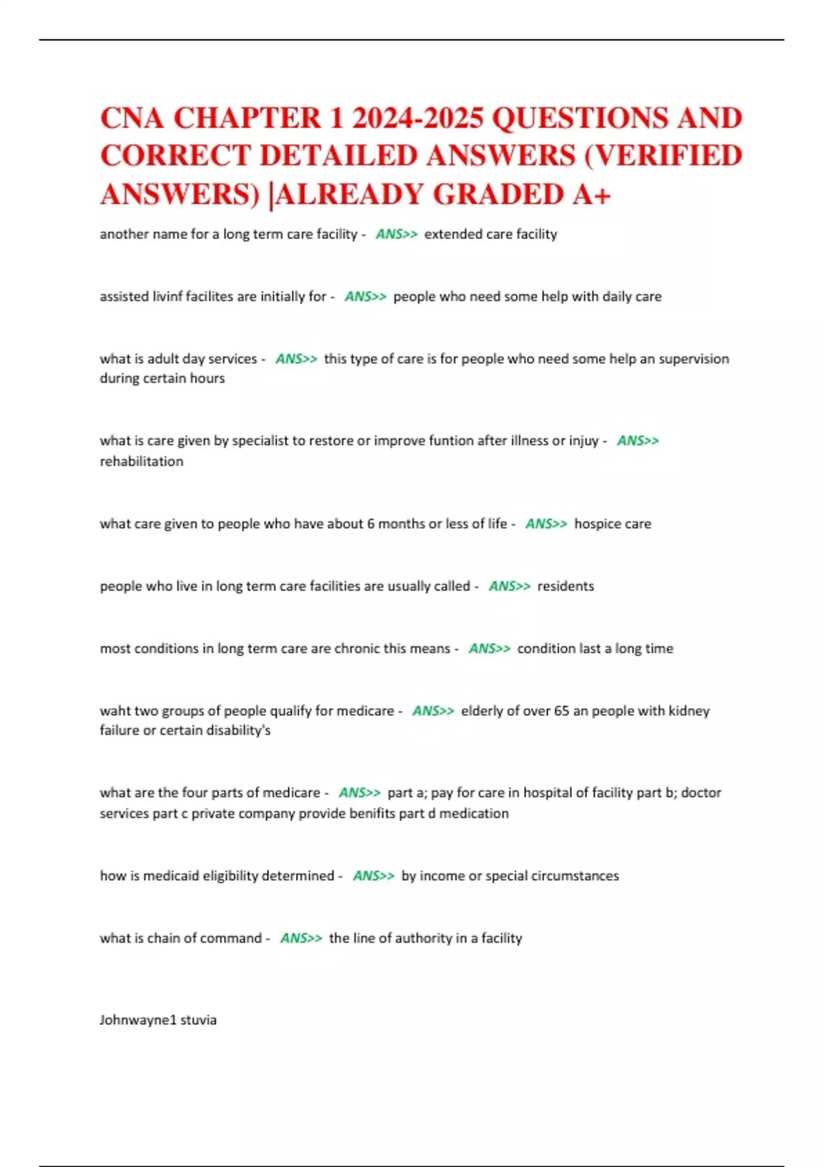 CNA chapter 1- 10 questions and answers 100% verified
