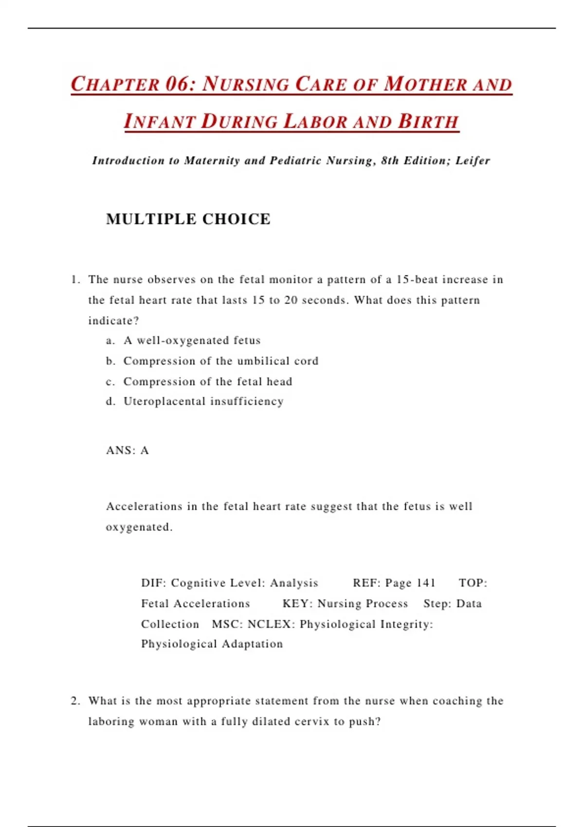 Test Bank for Introduction to Maternity and Pediatric Nursing, 8th Edition by Gloria Leifer Chapter 06-10