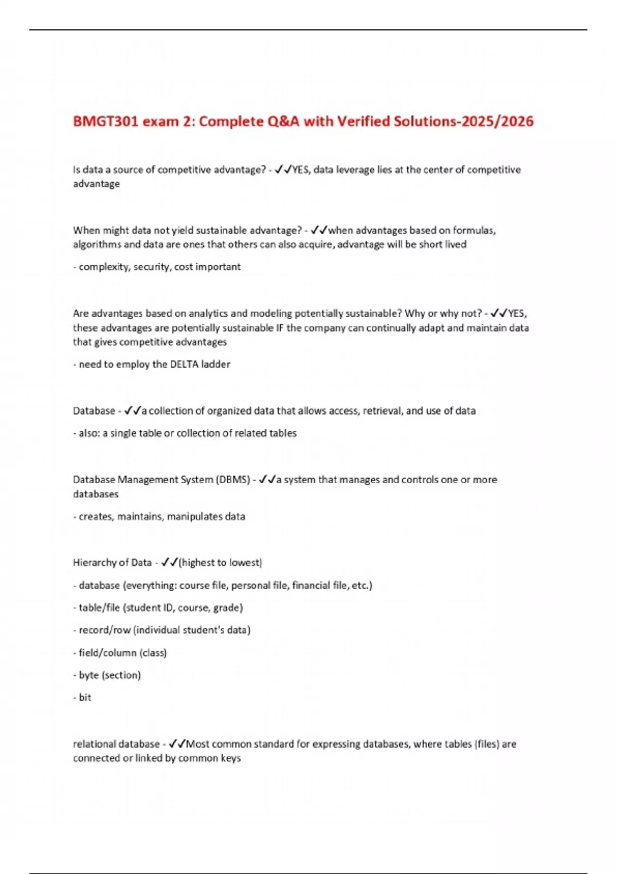 BUNDLE FOR BMGT 301 Exams with Verified Solutions- 2025/2026
