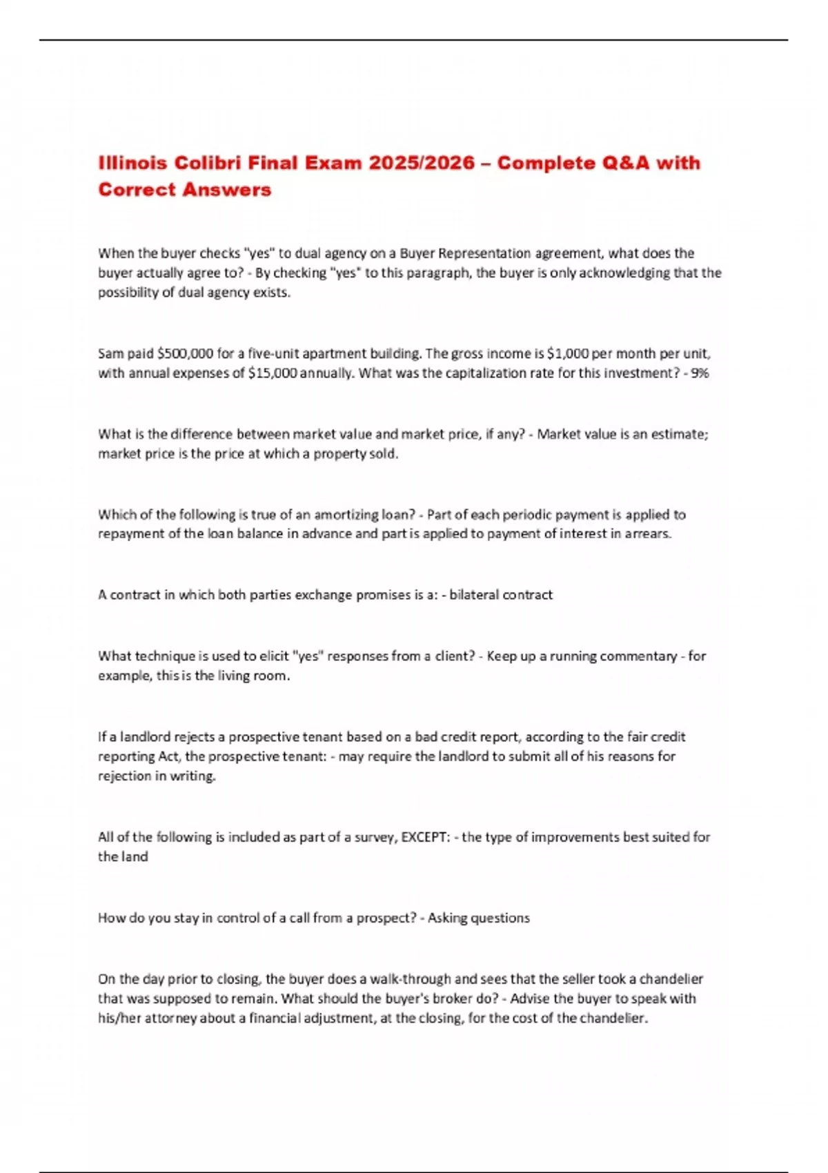 BUNDLE FOR Colibri Exams with Verified Solutions- 2025/2026