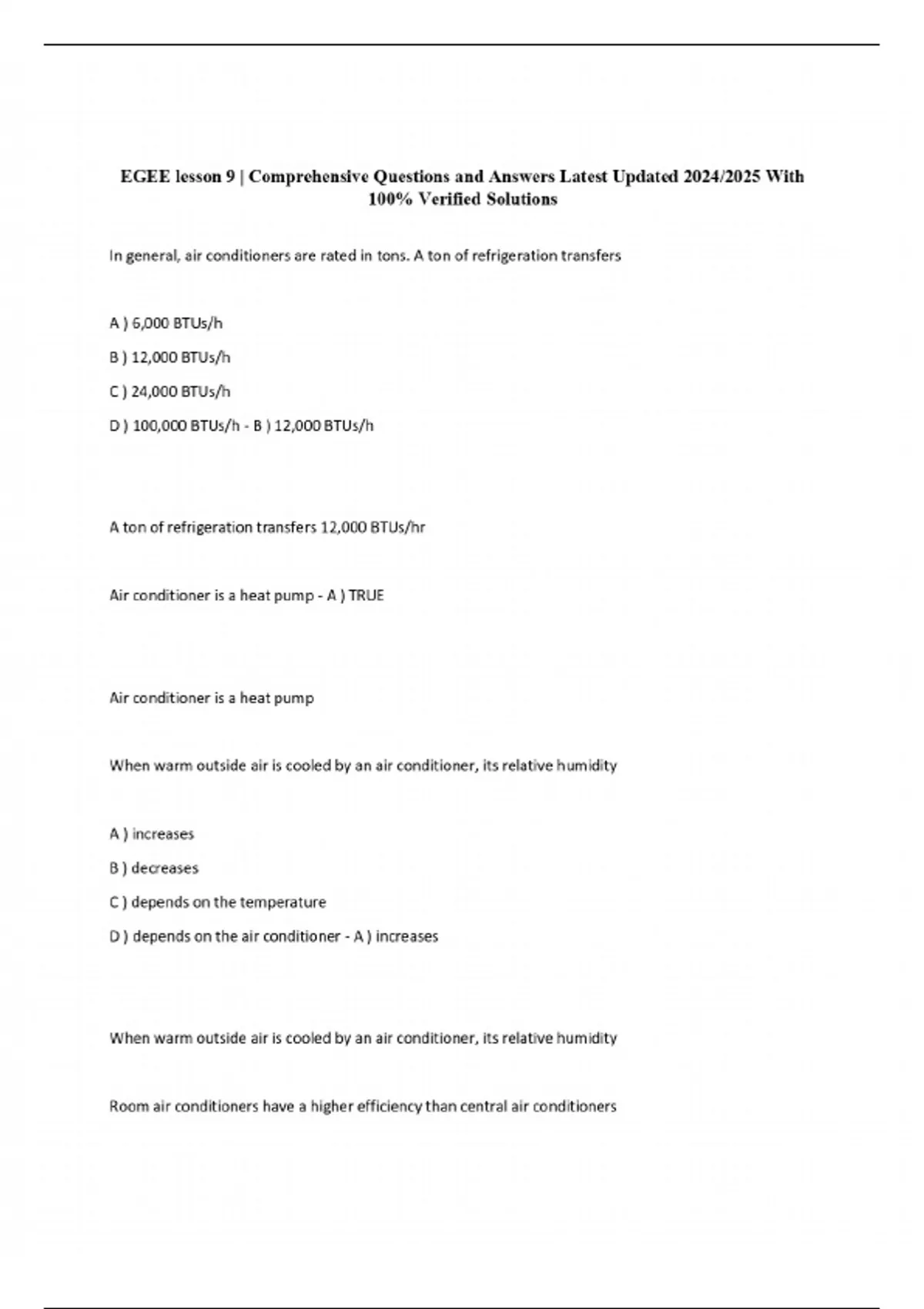 EGEE lesson 9 | Comprehensive Questions and Answers Latest Updated 2024/2025 With 100% Verified Solutions