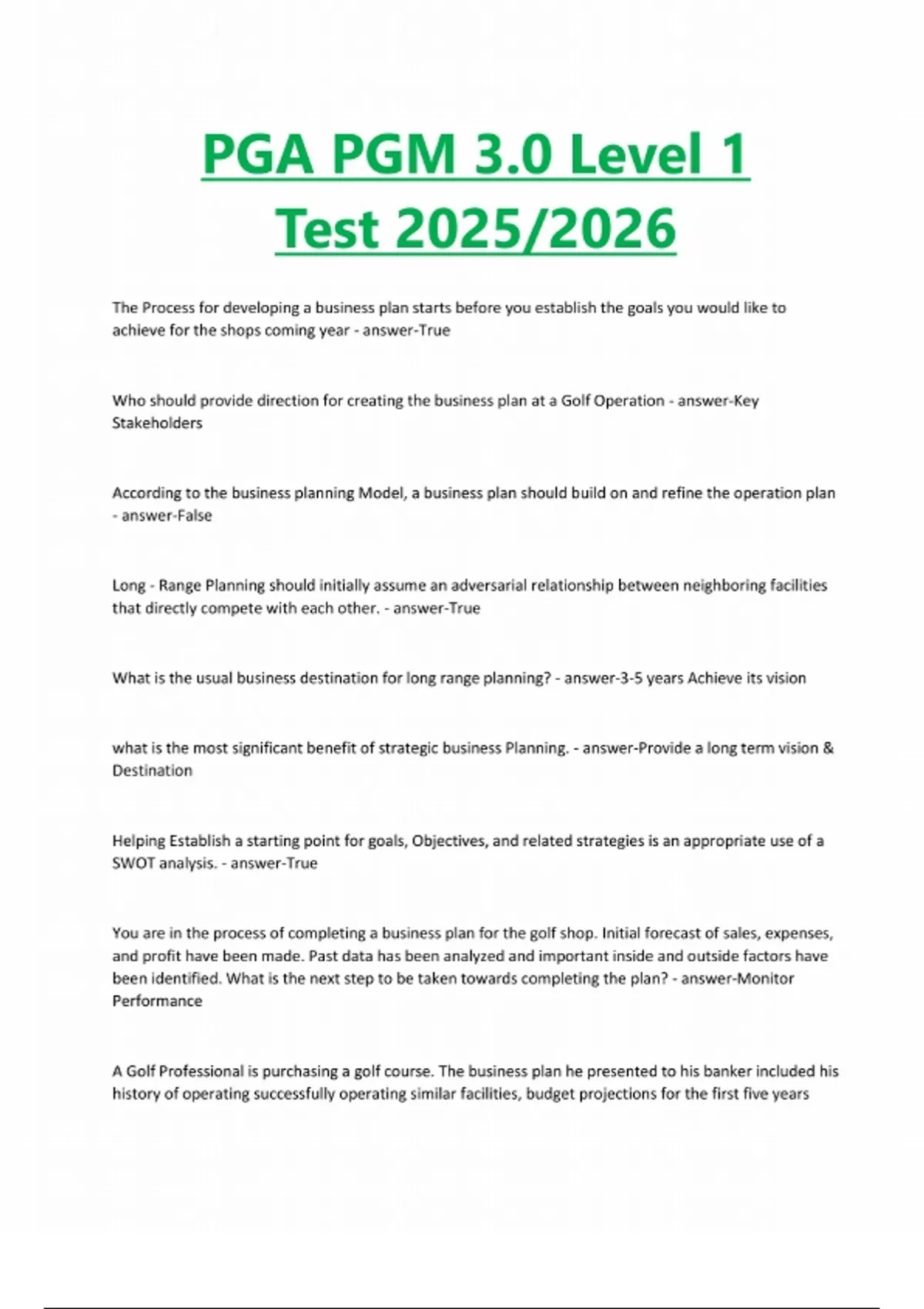 PGA 3.0 Level 2 Study Guide with 100% correct Answers 2025/2026