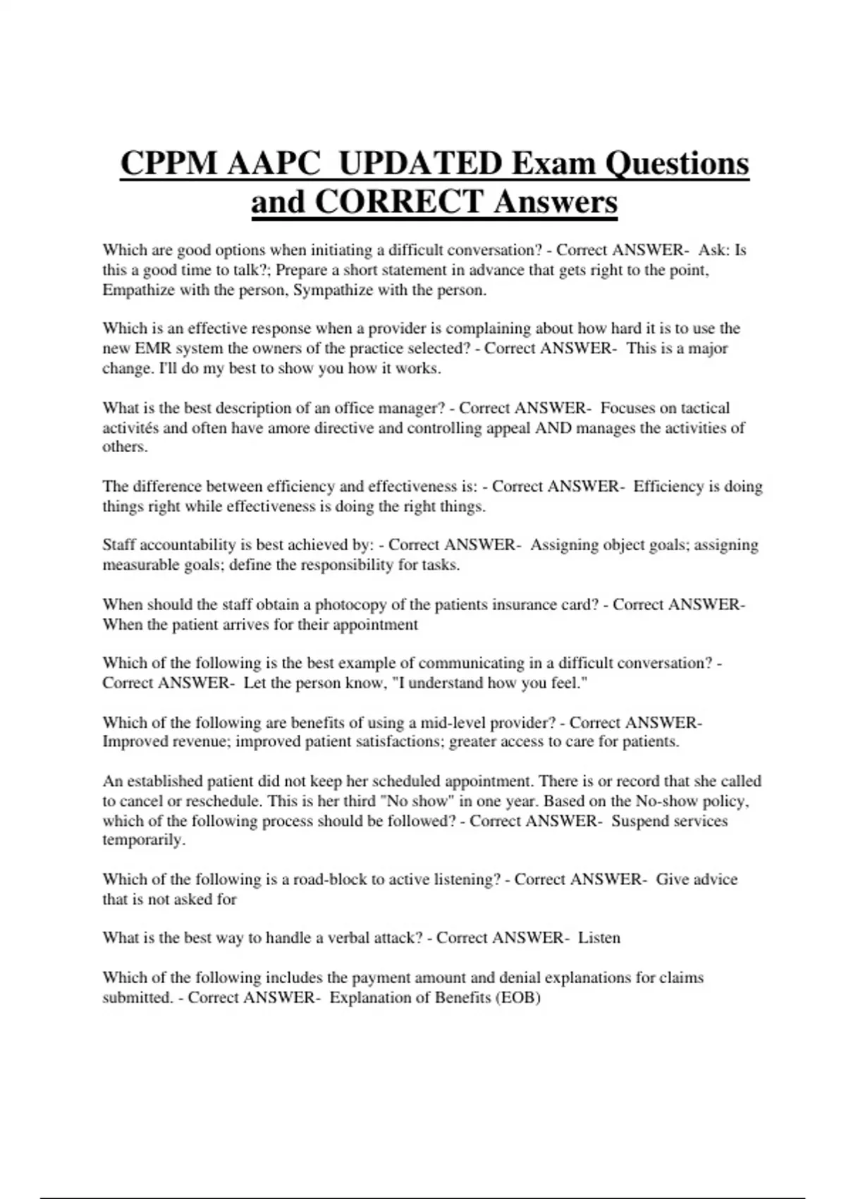 CPPM Bundled Exam Questions WITH CORRECT Answers