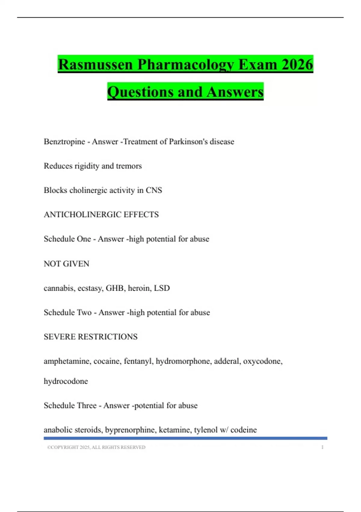 Rasmussen Pharmacology Bundled Tests 2026 Questions and Answers