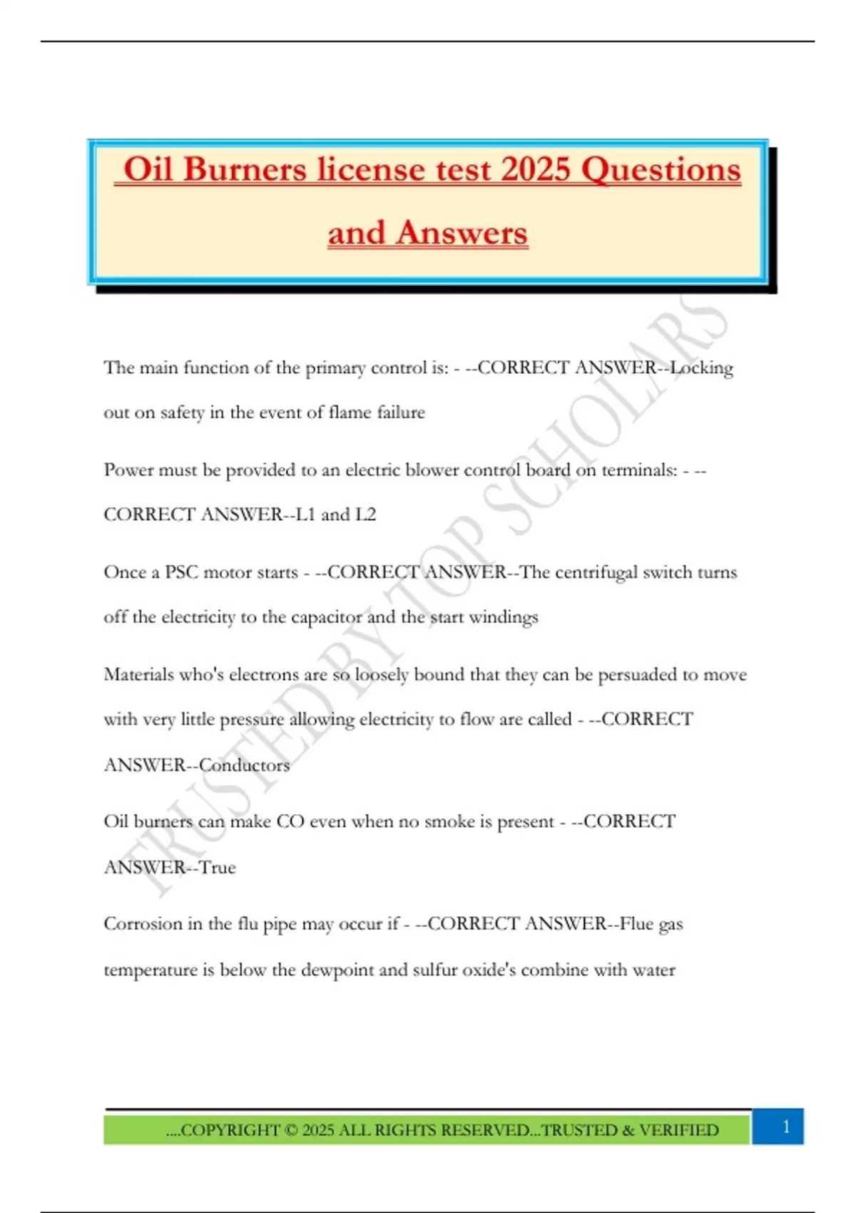 Oil Burners license test 2025 Questions and Answers