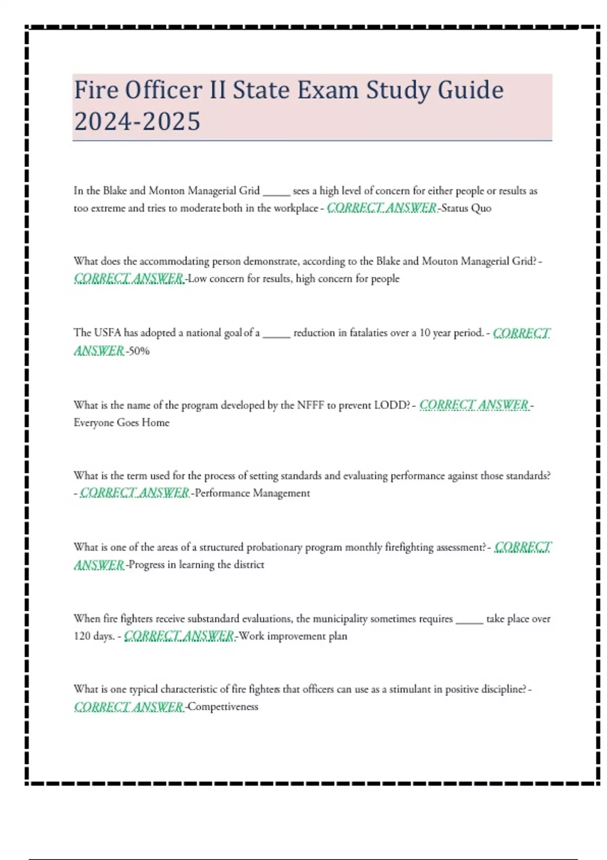 Certification Exam designed to give mid-level fire officers the knowledge and skills to meet the minimum job performance requirements