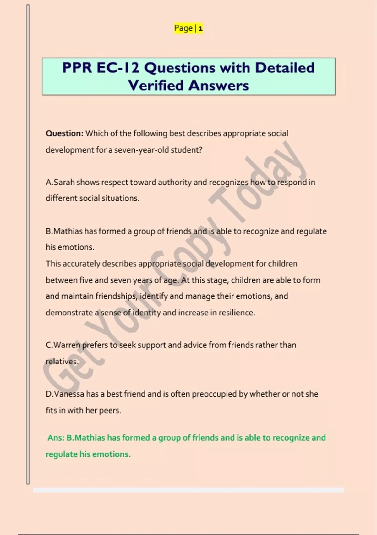 PPR EC-12 Practice Questions with Detailed Verified Answers