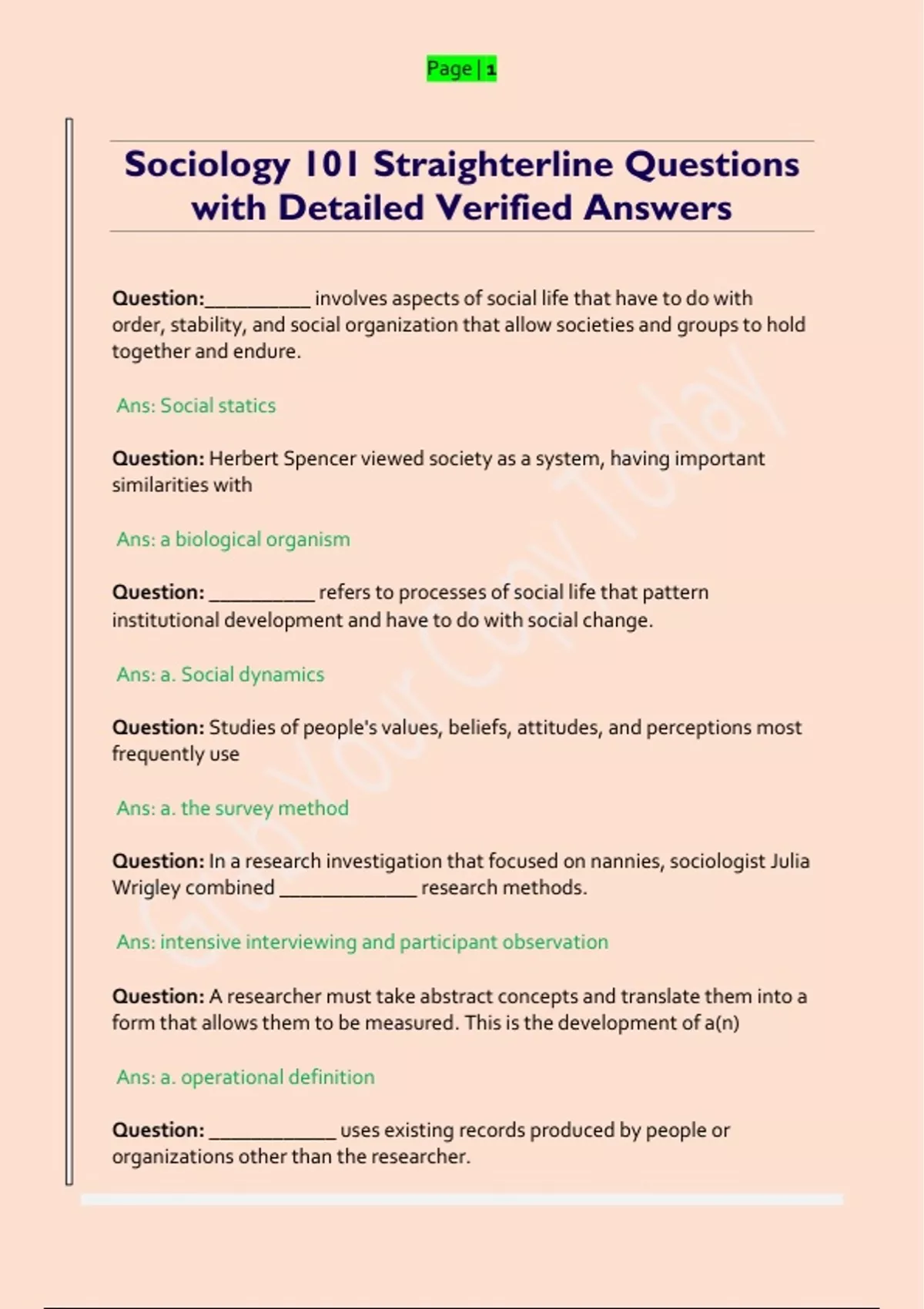Sociology 101 Straighterline Questions with Detailed Verified Answers