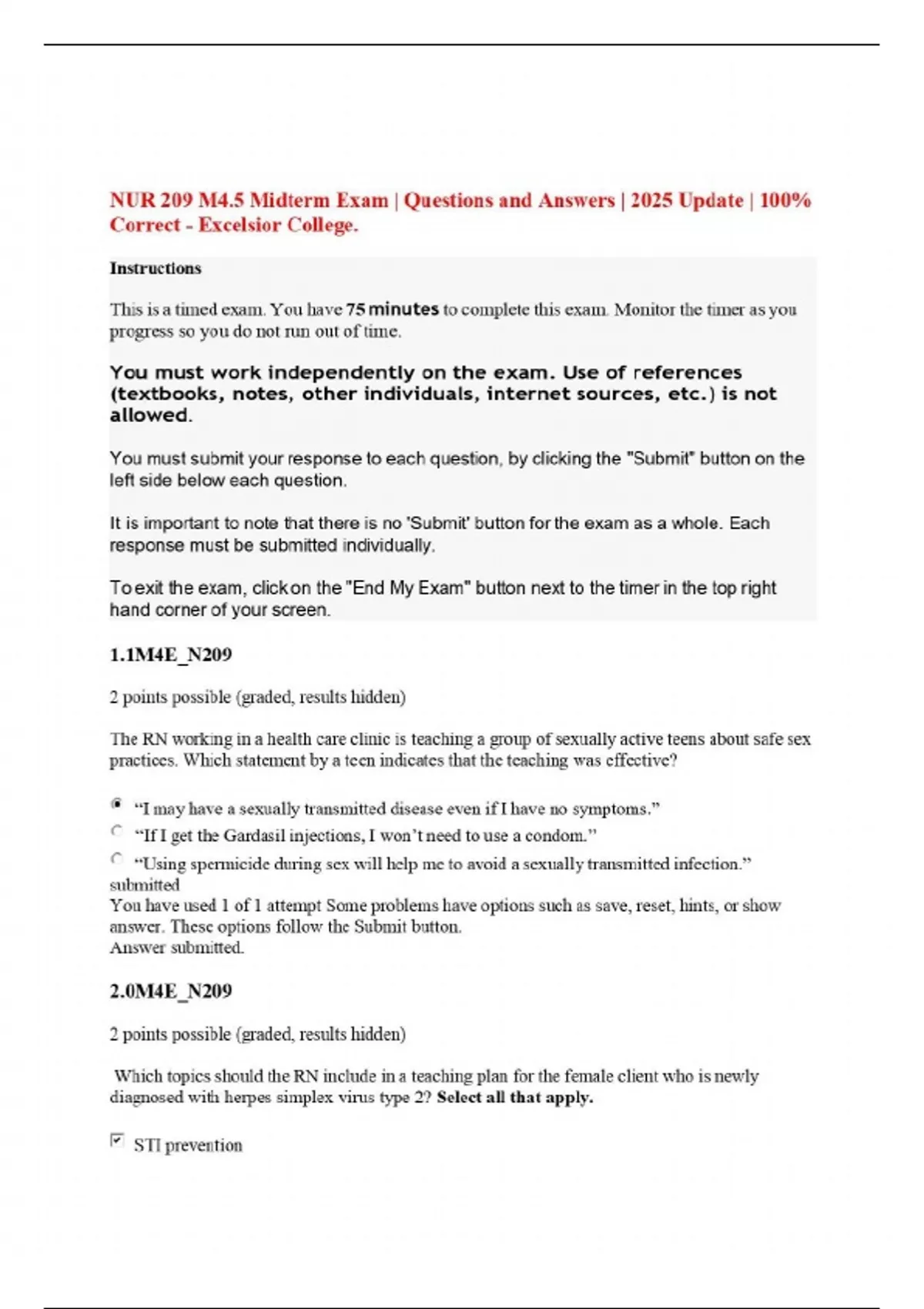 NUR 209 M4.5 Midterm Exam | Questions and Answers | 2025 Update | 100% Correct - Excelsior College.