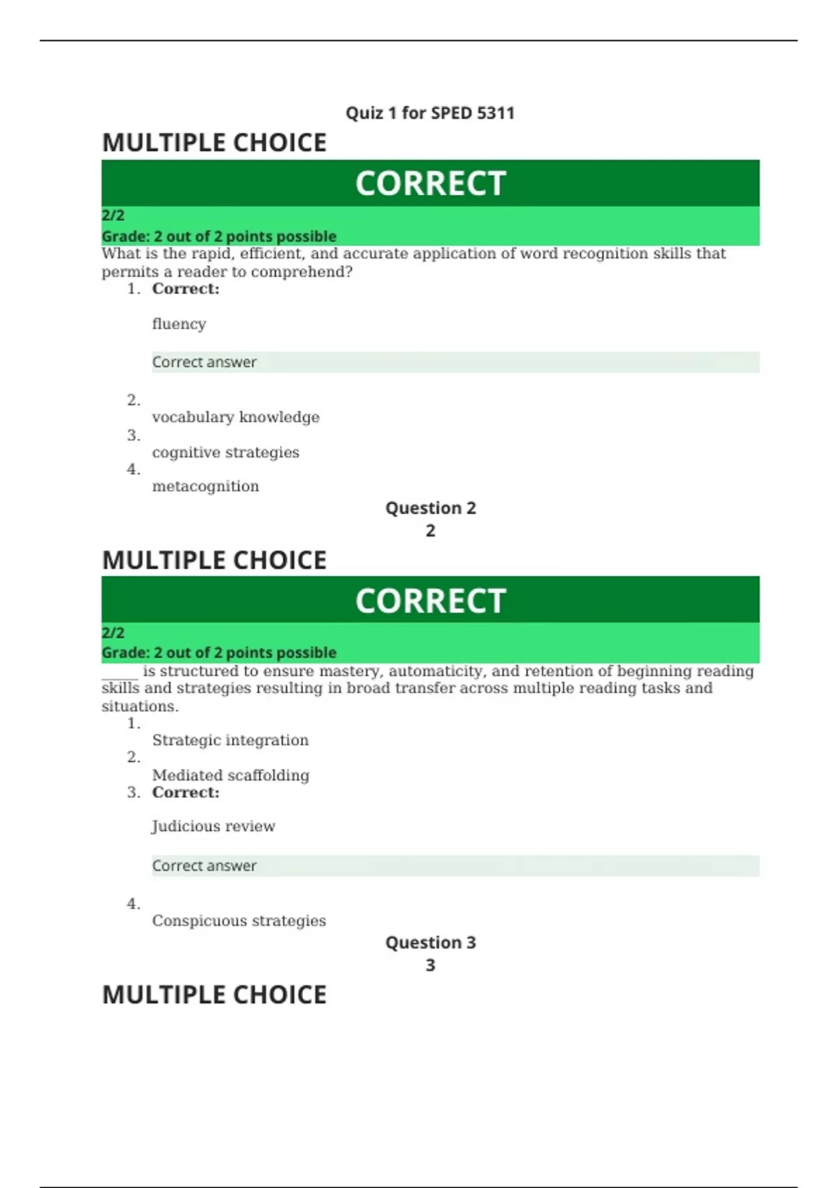 SPED 5311 Quiz 3 | Score 38/40 | Lamar University