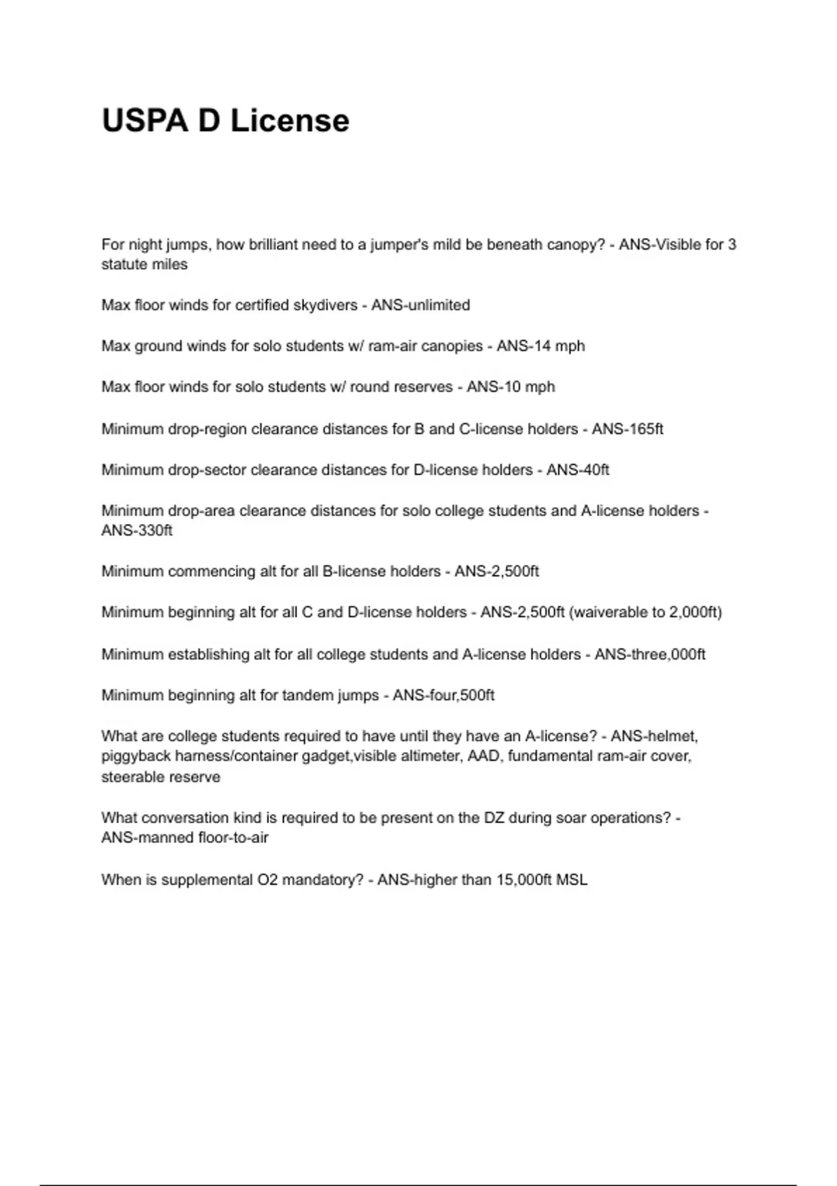 USPA D-License ALL EXAMS NEWEST 2025/2026 ACTUAL EXAM COMPLETE QUESTIONS AND CORRECT DETAILED ANSWERS (VERIFIED ANSWERS) |ALREADY GRADED A+||BRAND NEW!! (ALL BUNDLED HERE!!!)