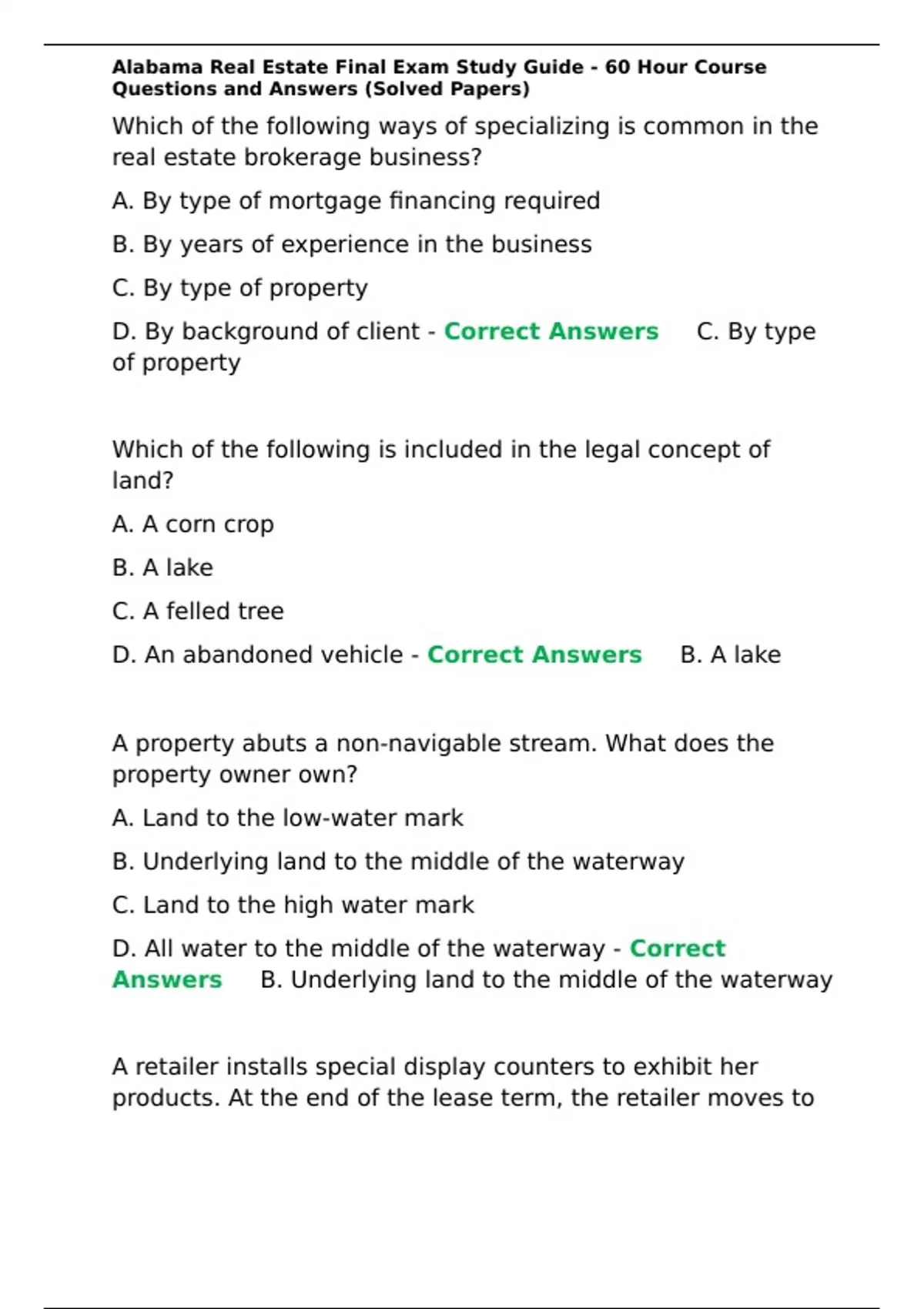 Alabama Real Estate License Exam Questions and VerifiedAlabama Real Estate License Exam Questions and Verified Answers, 100- Score Guarantee Pass (Latest Answers, 100- Score Guarantee Pass (Latest 2 Exam (elaborations) Alabama Post-License Practice Exam Questions and Answers (Solved Papers). 3 Exam (elaborations) Alabama Real Estate Post License