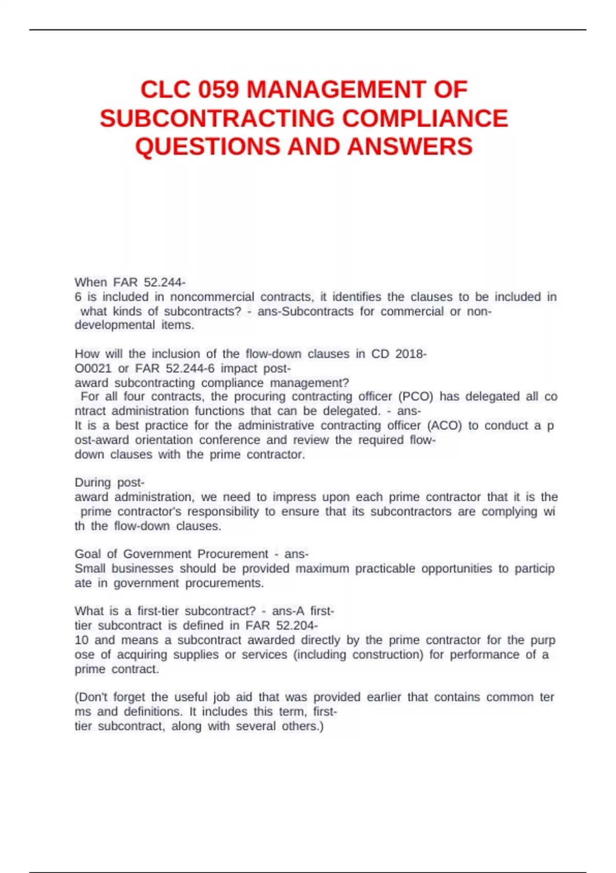 CLM 059 QUESTIONS AND ANSWERS