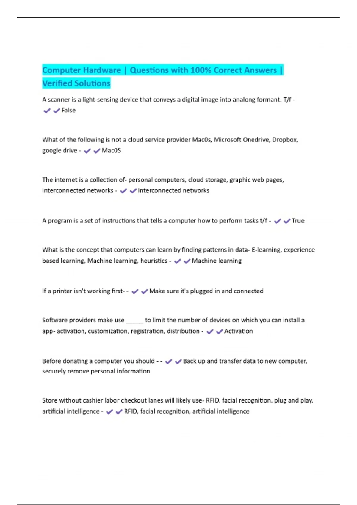 EXAMS BUNDLE PACKAGE FOR:::Computer Hardware Exam | Questions with 100% Correct Answers | Verified Solutions