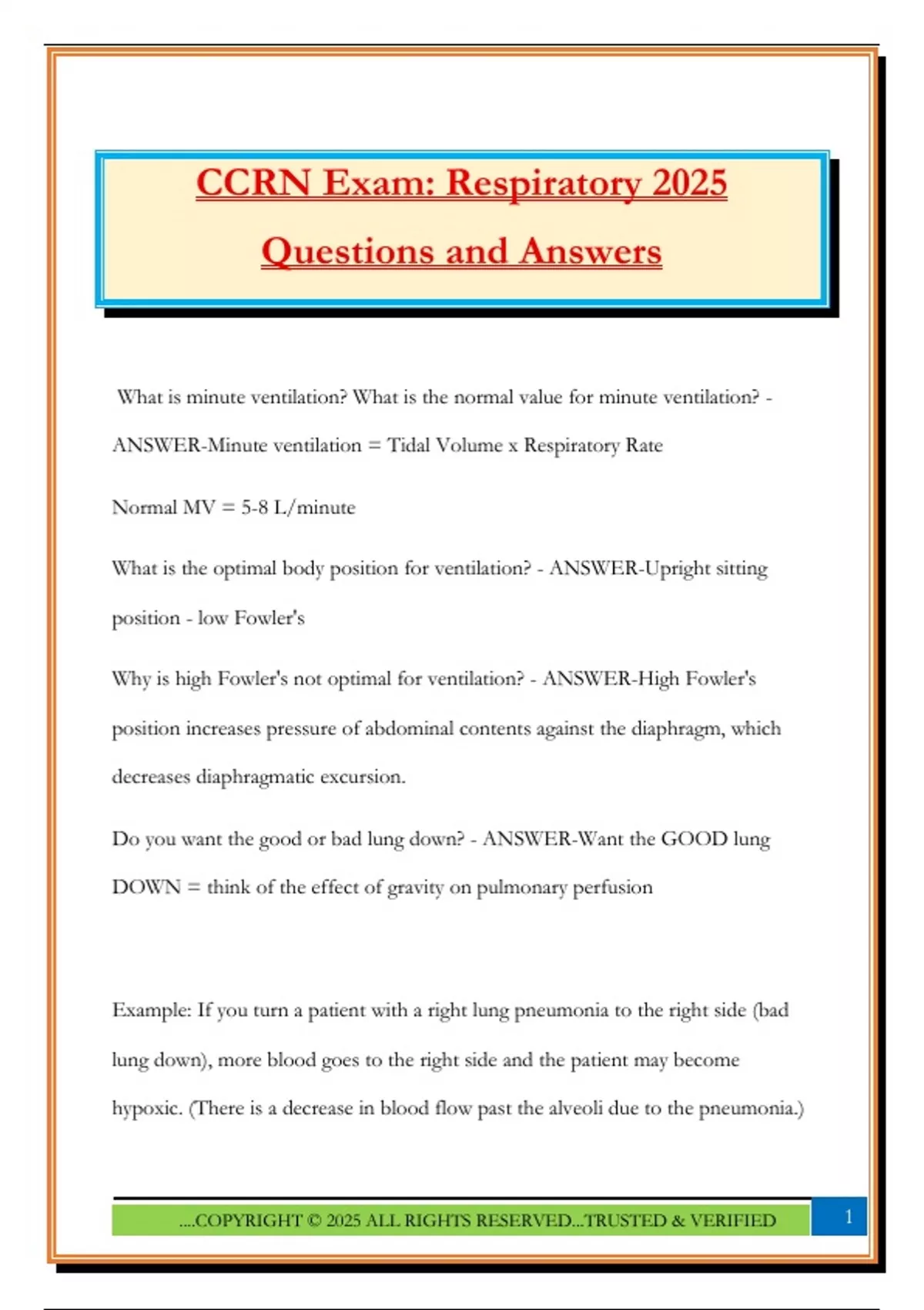 CCRN Bundled Exams |Questions and Answers |100% Pass| Current Update