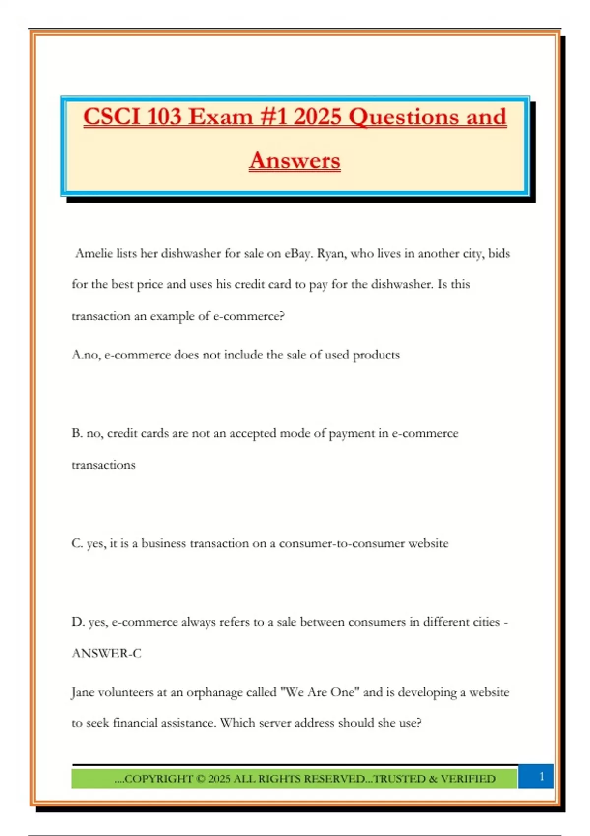 Csci 103 Bundled Exams 2025/2026 |Questions and Answers |100% Pass| Current Update