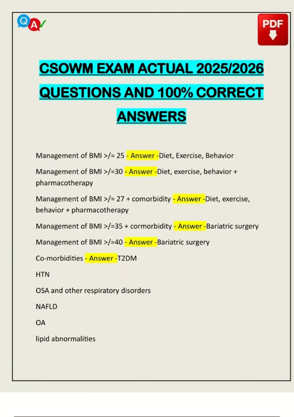 PACKAGE DEAL::: CSOWM EXAMS 2025/2026 Q&A 100% PASS