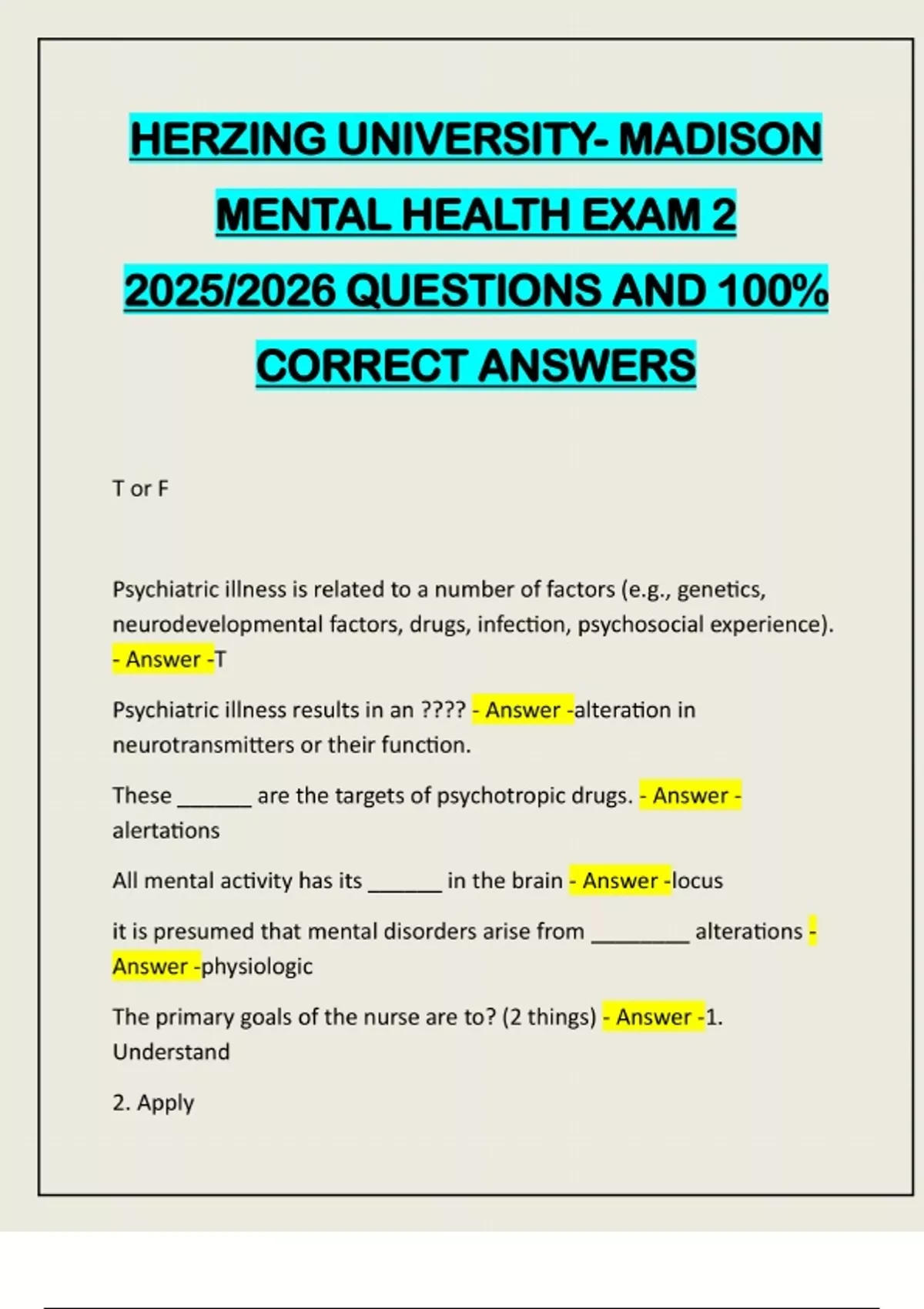 PACKAGE DEAL::: MENTAL HEALTH EXAMS 2025/2026 Q&A 100% PASS