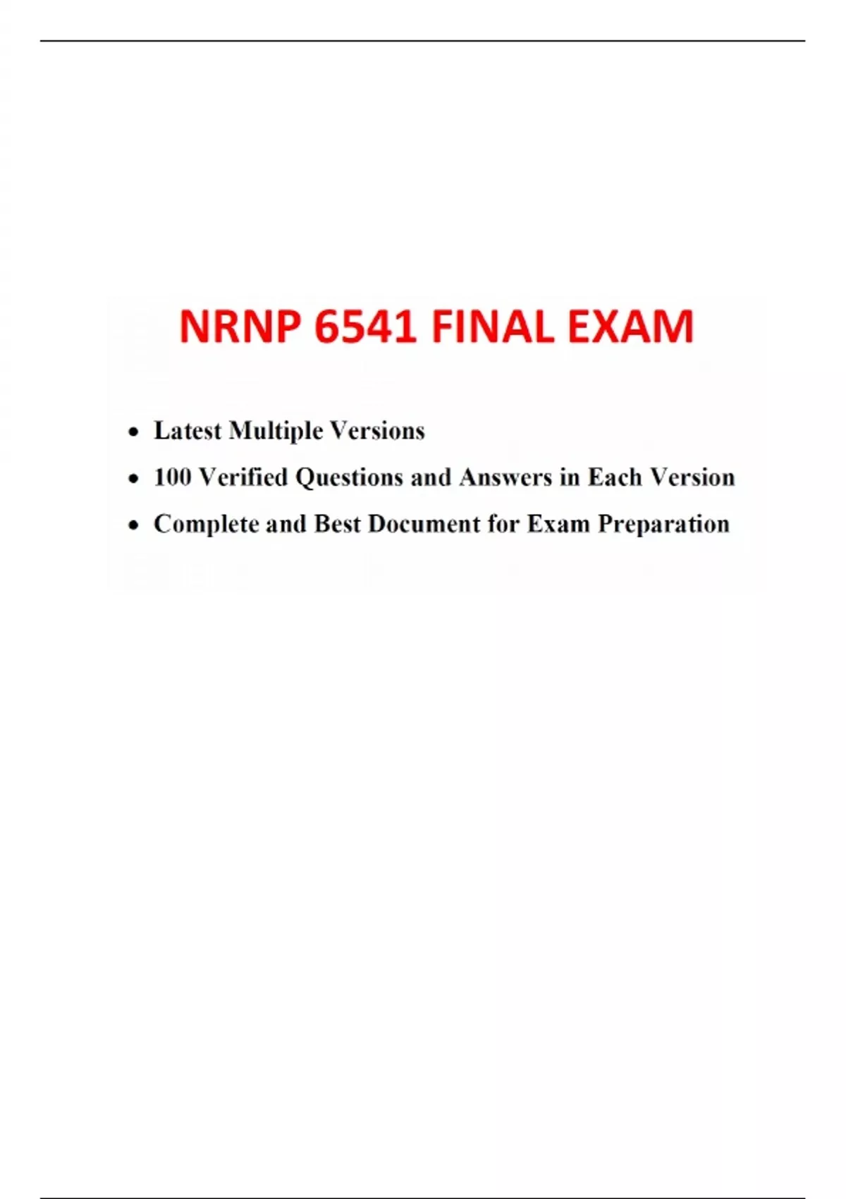 NRNP 6541 Final Exam (3 Versions, Latest, 300 Q & A) & NRNP 6541 Midterm Exam (3 Versions, Latest, 300 Q & A): Walden University | 100% Verified Q & A |