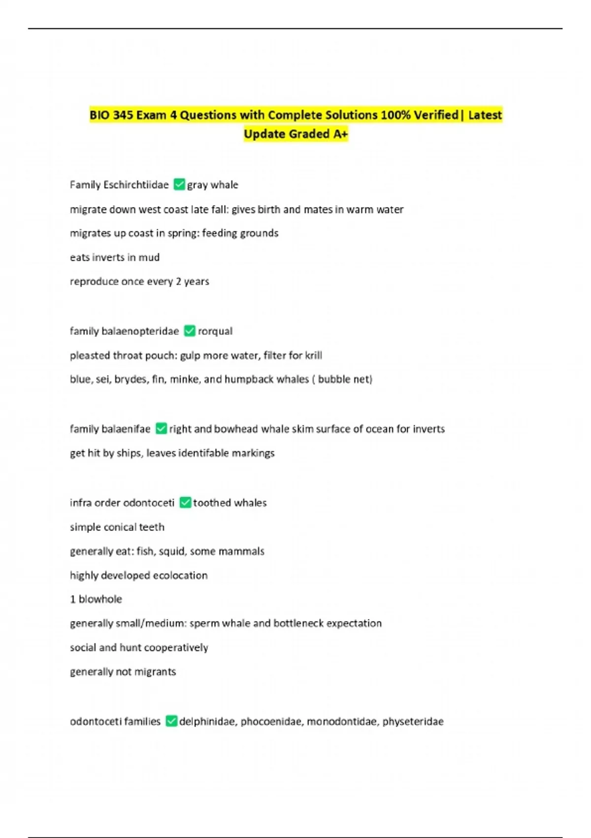 BIO 345 Exam 4 Questions with Complete Solutions 100% Verified| Latest Update Graded A+ 2 Exam (elaborations) BIO 345 exam 3 Questions with Complete Solutions 100% Verified| Latest Update Graded A+ 3 Exam (elaborations) BIO 345 exam 2 Questions with Complete Solutions 100% Verified| Latest Update Graded A+ 4 Exam (elaborations) BIO 345 Exam 1 Quest