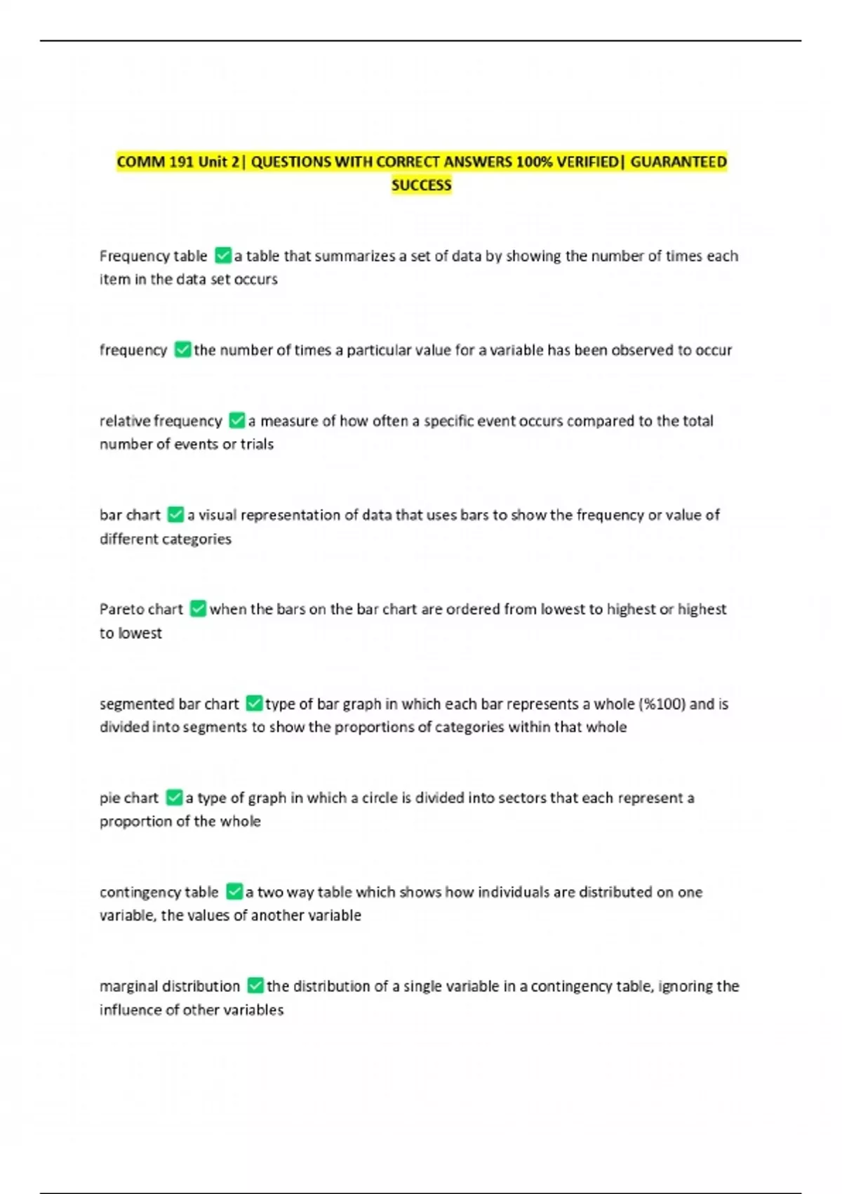 COMM 191 Unit 2| QUESTIONS WITH CORRECT ANSWERS 100% VERIFIED| GUARANTEED SUCCESS 2 Exam (elaborations) COMM 191 Unit 1| QUESTIONS WITH CORRECT ANSWERS 100% VERIFIED| GUARANTEED SUCCESS 3 Exam (elaborations) COMM 191 CHAPTER 3| QUESTIONS WITH CORRECT ANSWERS 100% VERIFIED| GUARANTEED SUCCESS 4 Exam (elaborations) COMM 191 CHAPTER 2| QUESTIONS WITH