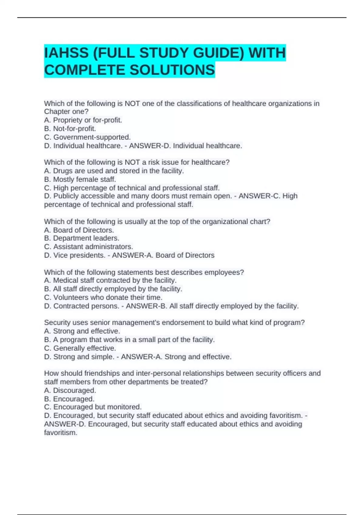 IAHSS CERTIFICATION EXAM BUNDLE|| QUESTIONS WITH CORRECT ANSWERSIAHSS CERTIFICATION EXAM BUNDLE|| QUESTIONS WITH CORRECT ANSWERSIAHSS CERTIFICATION EXAM BUNDLE|| QUESTIONS WITH CORRECT ANSWERSIAHSS CERTIFICATION EXAM BUNDLE|| QUESTIONS WITH CORRECT ANSWERSIAHSS CERTIFICATION EXAM BUNDLE|| QUESTIONS WITH CORRECT ANSWERSIAHSS CERTIFICATION EXAM BUNDL