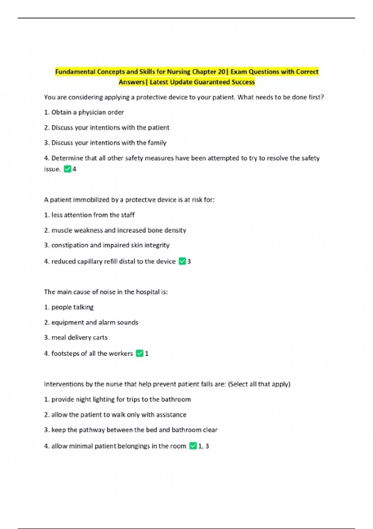 Fundamental Concepts and Skills for Nursing Chapter 7 Exam Questions with Correct Answers| Latest Update Guaranteed Success 9 Exam (elaborations) Fundamental Concepts and Skills for Nursing| Chapter 1-3 Exam Questions with Correct Answers| Latest Update Guaranteed Success 10 Exam (elaborations) fundamental concepts and skills for nursing Exam Quest