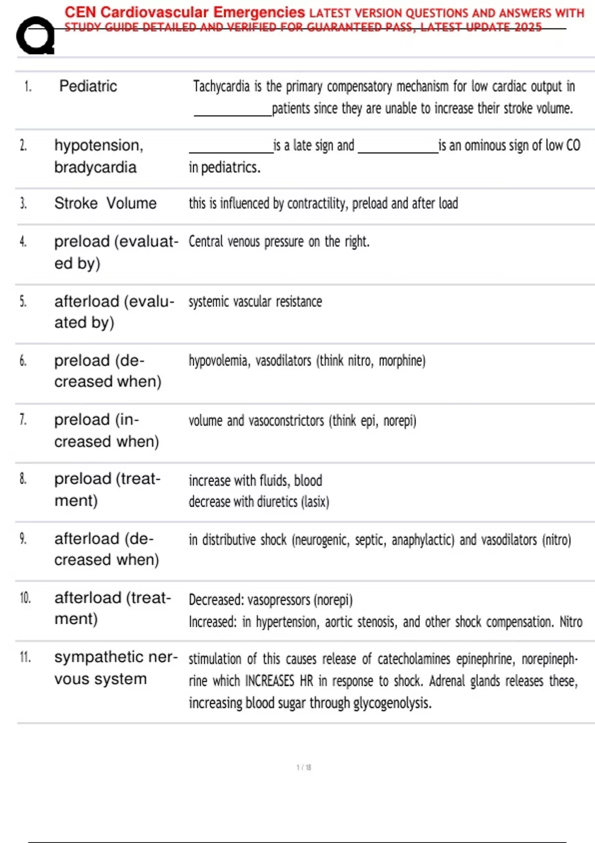 CEN Cardiovascular Emergencies LATEST VERSION QUESTIONS AND ANSWERS WITH STUDY GUIDE BUNDLE