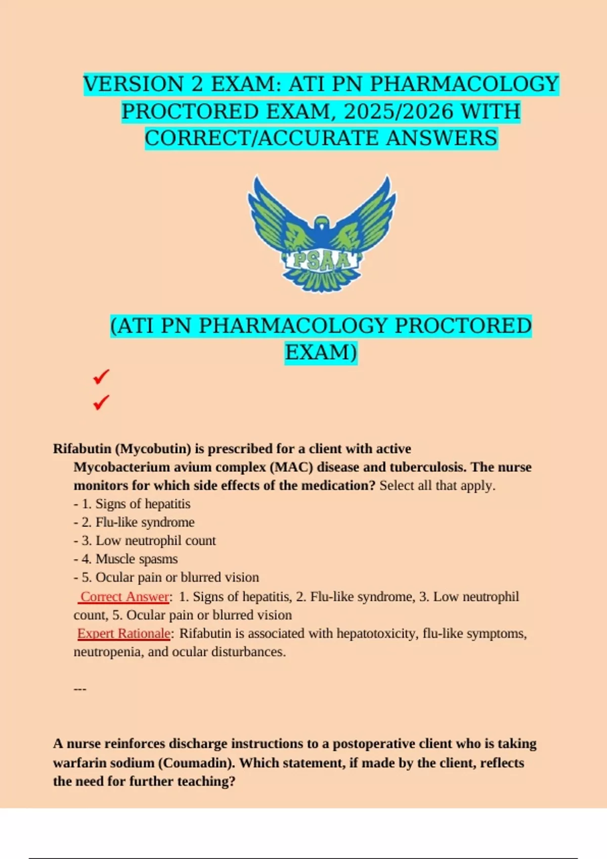 ATI PROCTORED PEDIATRICS EXAM: 2025/2026, WITH CORRECT AND VERIFIED ANSWERS ATI PN PHARMACOLOGY PROCTORED VERSION 3 EXAM: ATI PN PHARMACOLOGY PROCTORED EXAM, 2025/2026 WITH CORRECT AND VERIFIED ANSWERS ATI FINAL EXAM: ATI PEDIATRICS PROCTORED, 2025/2026 WITH CORRECT AND VERIFIED ANSWERS