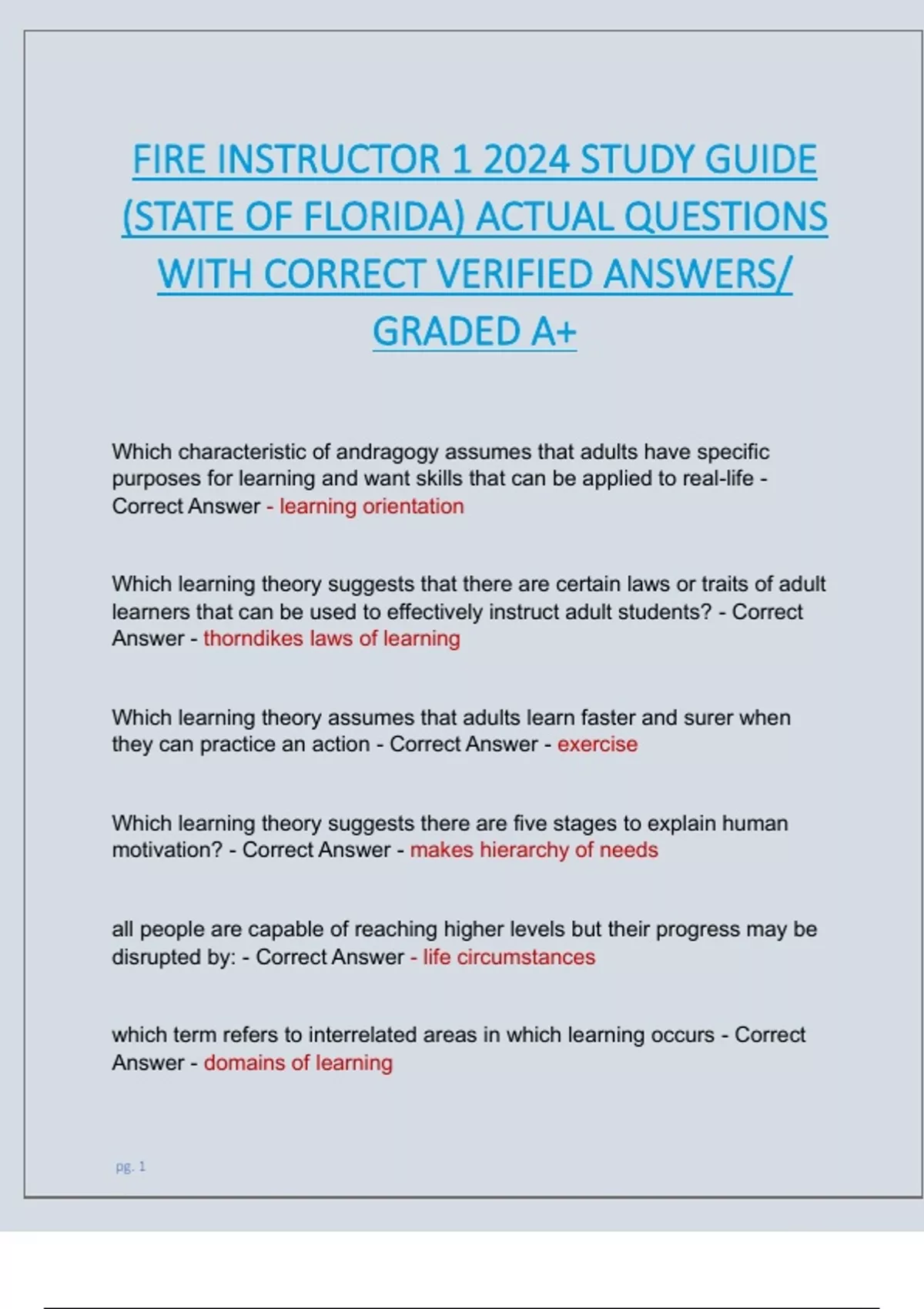 FLORIDA STATE FIRE INSTRUCTOR I & II LATEST 2025 PACKAGE DEAL| COMPLETE ACTUAL EXAM QUESTIONS AND CORRECT VERIFIED ANSWERS/ ALREADY GRADED A+