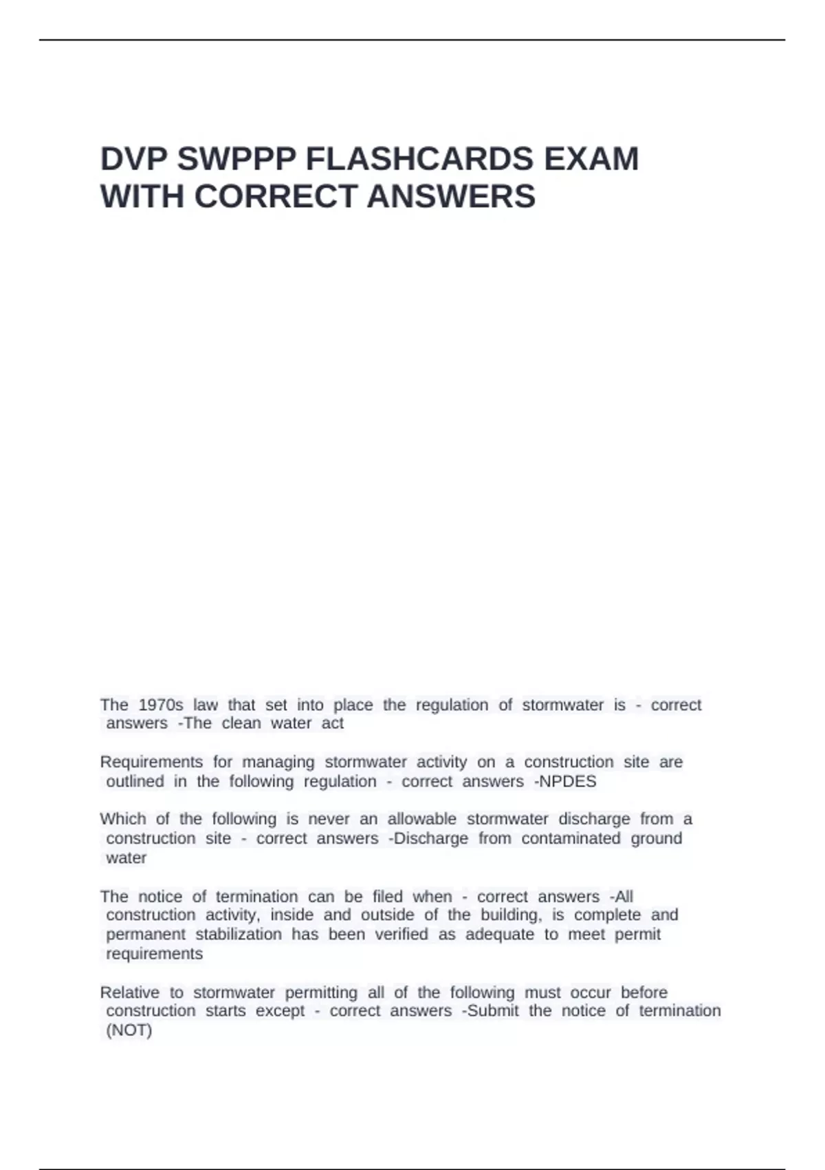 DVP SWPPP FLASHCARDS EXAM WITH CORRECT ANSWERS