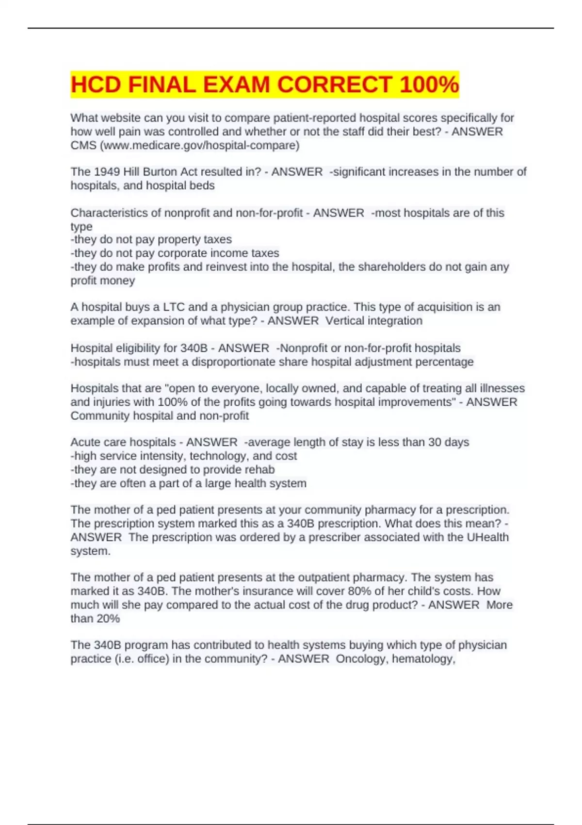 HCD FINAL EXAM STUDY GUIDE CORRECT 100% COMPLETE EXAM BUNDLE