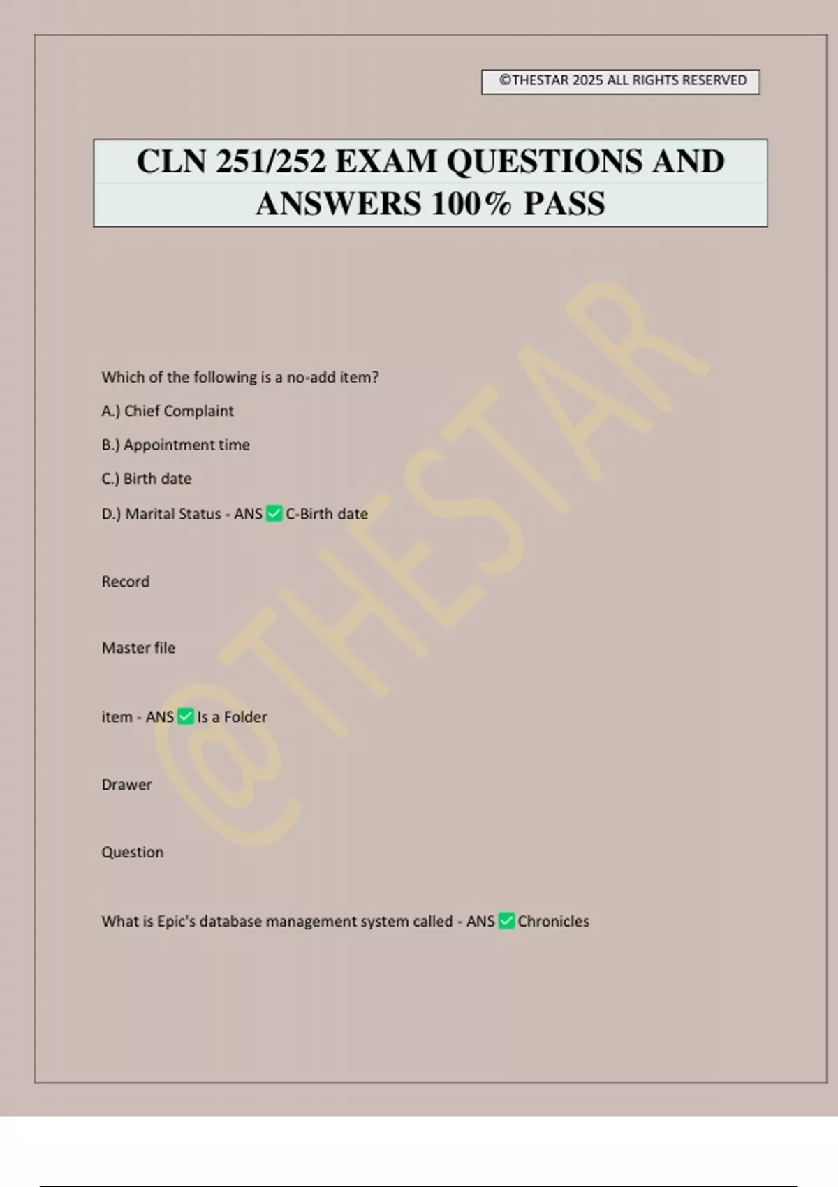 CLN 251/252 EXAM QUESTIONS AND ANSWERS 100% PASS