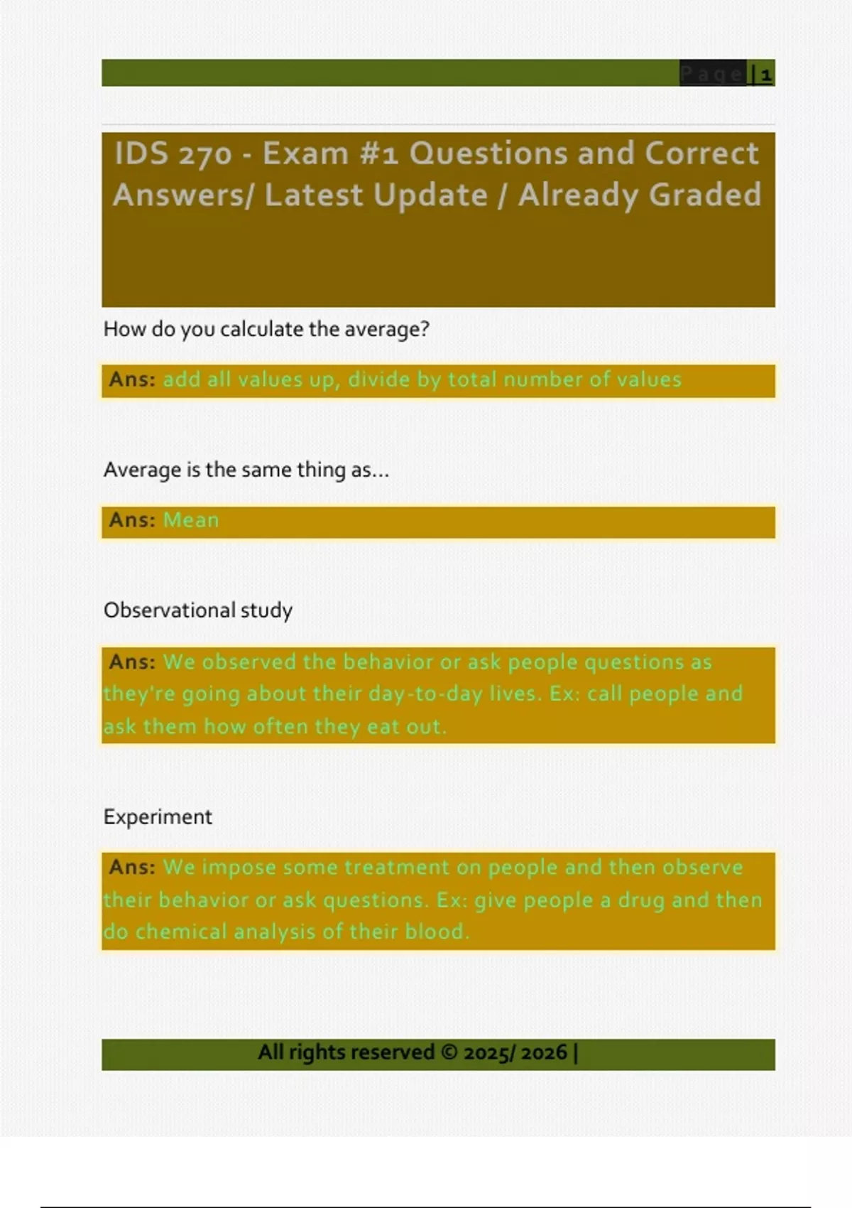 IDS 270 Questions and Correct Answers/ Latest Update / Already Graded