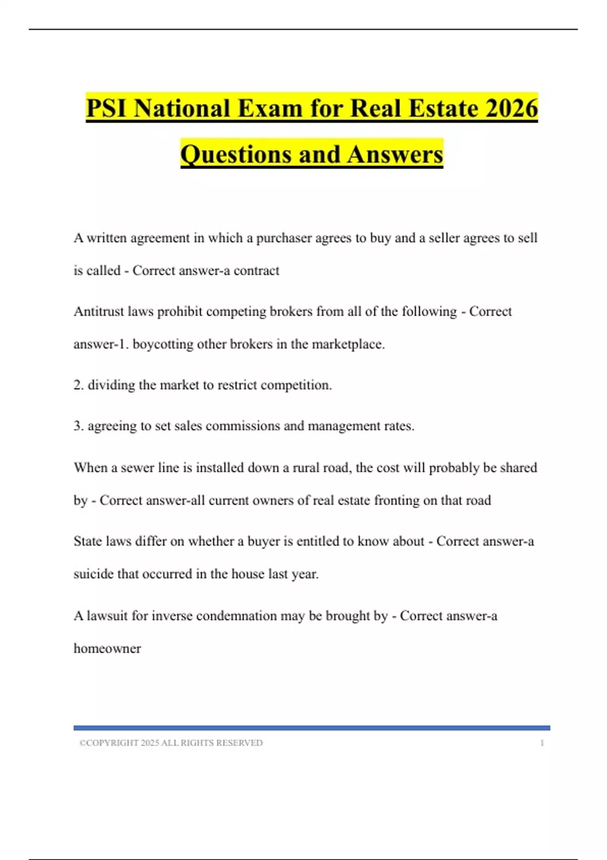 PSI National Exam for Real Estate 2026 Questions and Answers