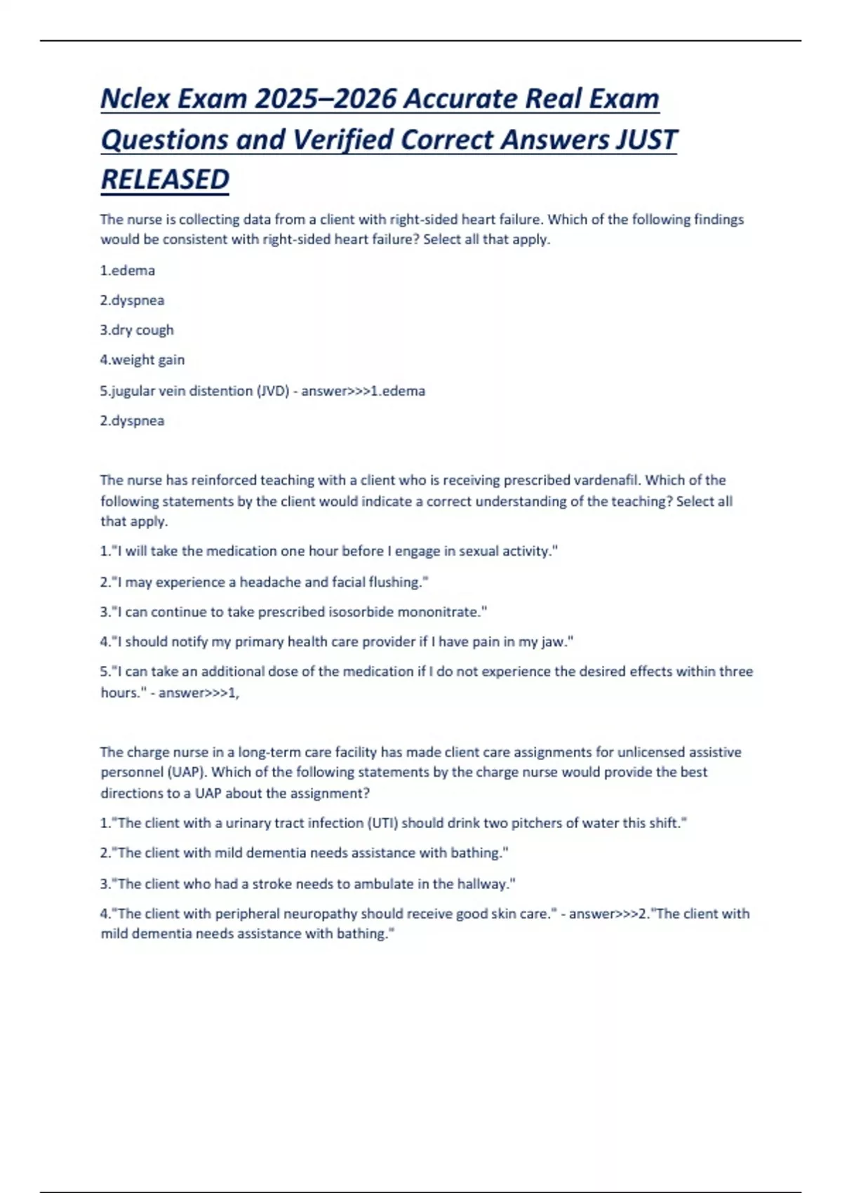 NCLEX Exam 2025–2026 – Comprehensive Q&A Review for U.S. Nursing Candidates Accurate Real Exam Questions and Verified Correct Answers