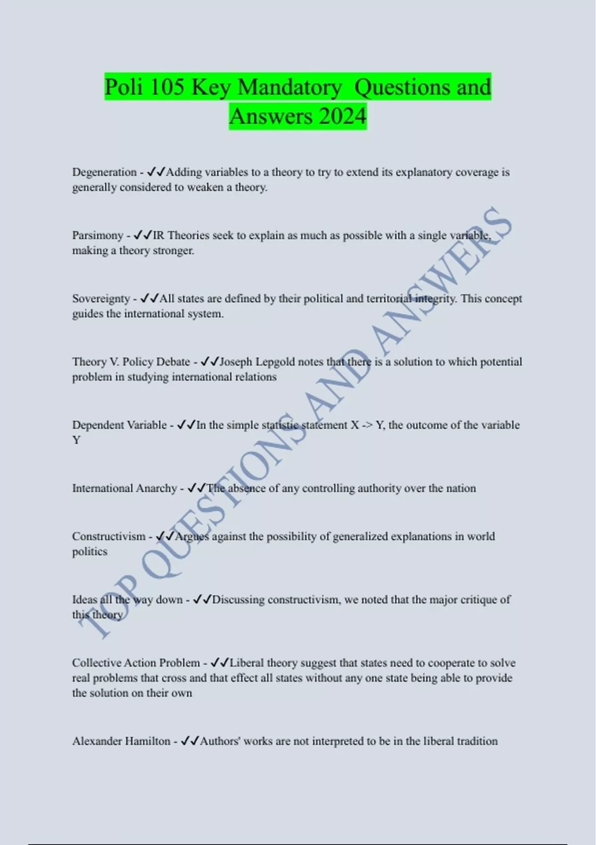 POLI 105 Bundled Exam Questions WITH CORRECT Answers
