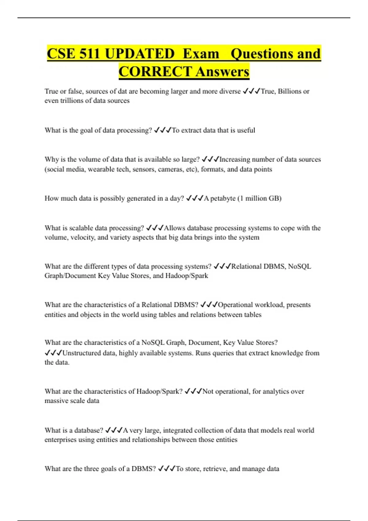 CSE 511 Bundled Exam Questions WITH CORRECT Answers