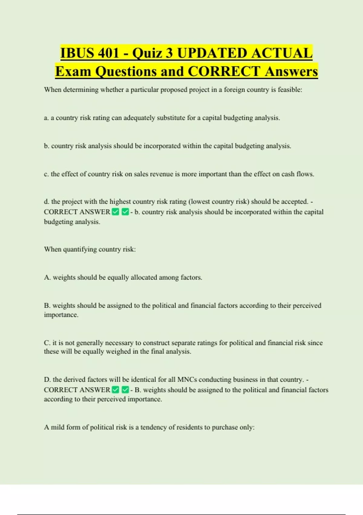IBUS 401 Bundled Exam Questions WITH CORRECT Answers