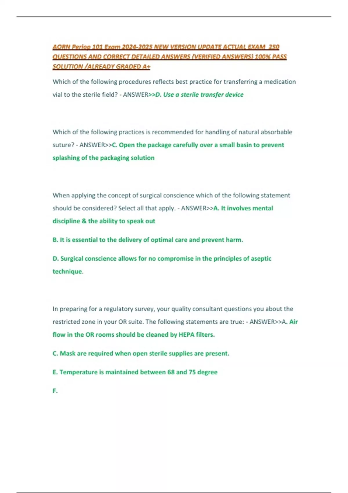 AORN Periop 101 Exam NEW VERSION UPDATE ACTUAL EXAM 250 QUESTIONS AND CORRECT DETAILED ANSWERS (VERIFIED ANSWERS) 100% PASS SOLUTION /ALREADY GRADED A+