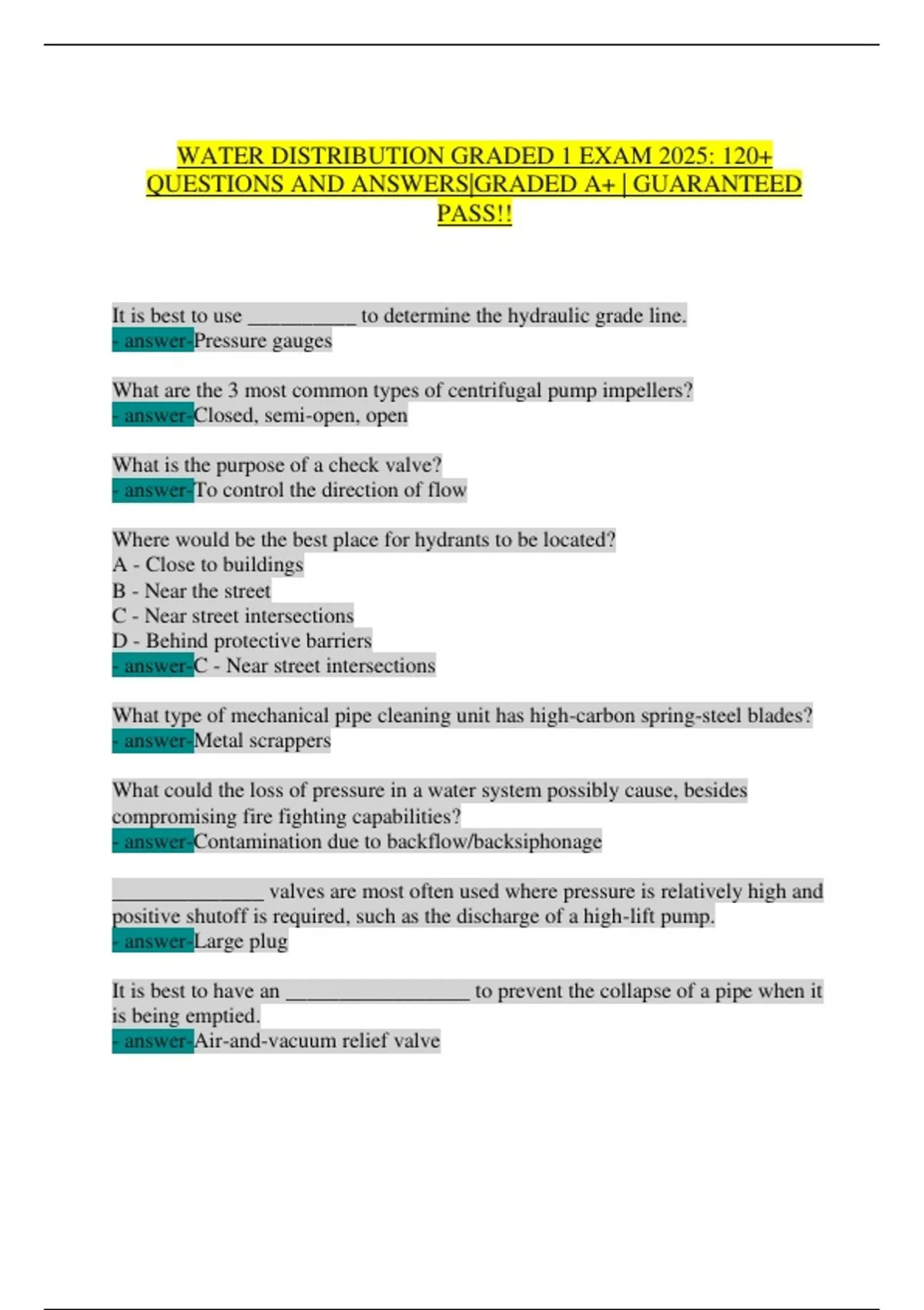 ADEQ Water Distribution Grade 1 Final Exam Review 2025| Graded A+|guaranteed pass!!