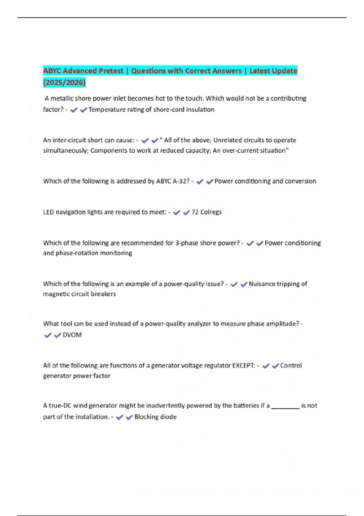 ABYC Advanced Pretest | Questions with Correct Answers | Latest Update (2025/2026