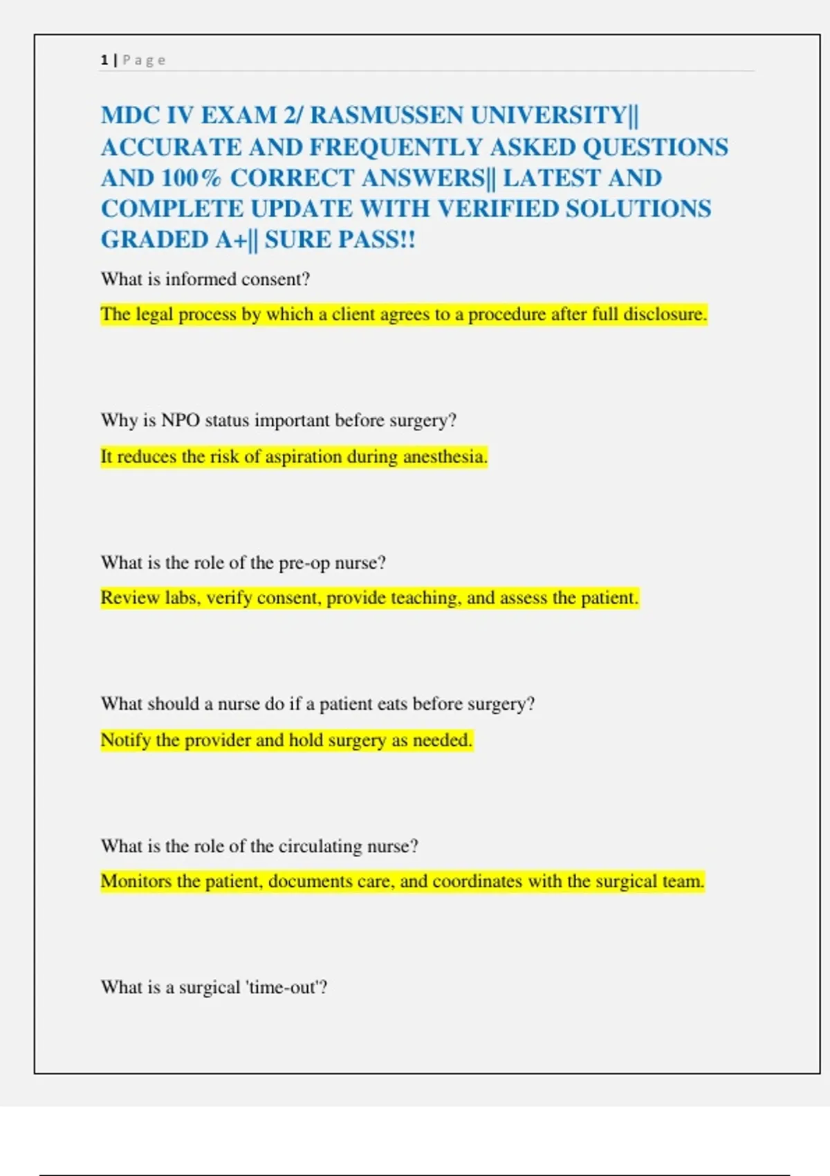 MDC IV EXAM 2 TESTS FOR RASMUSSEN UNIVERSITY|| ACCURATE AND FREQUENTLY ASKED QUESTIONS AND 100% CORRECT ANSWERS|| LATEST AND COMPLETE UPDATE WITH VERIFIED SOLUTIONS GRADED A+|| SURE PASS!!