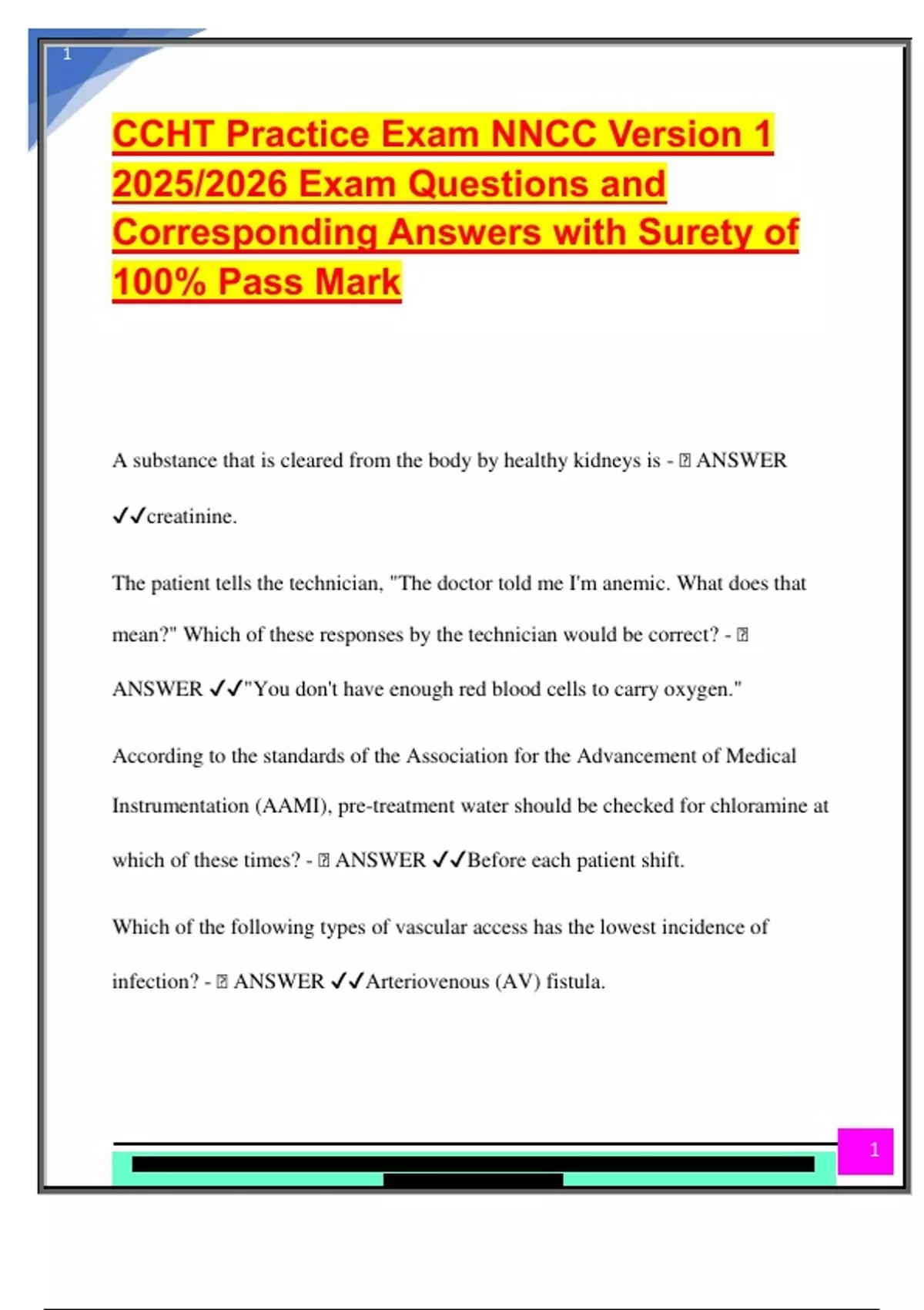 NNCC CCHT EXAM PACKAGE DEAL QUESTIONS AND VERIFIED DETAILED ANSWERS | 100% GUARANTEED PASS | ALREADY GRADED A+