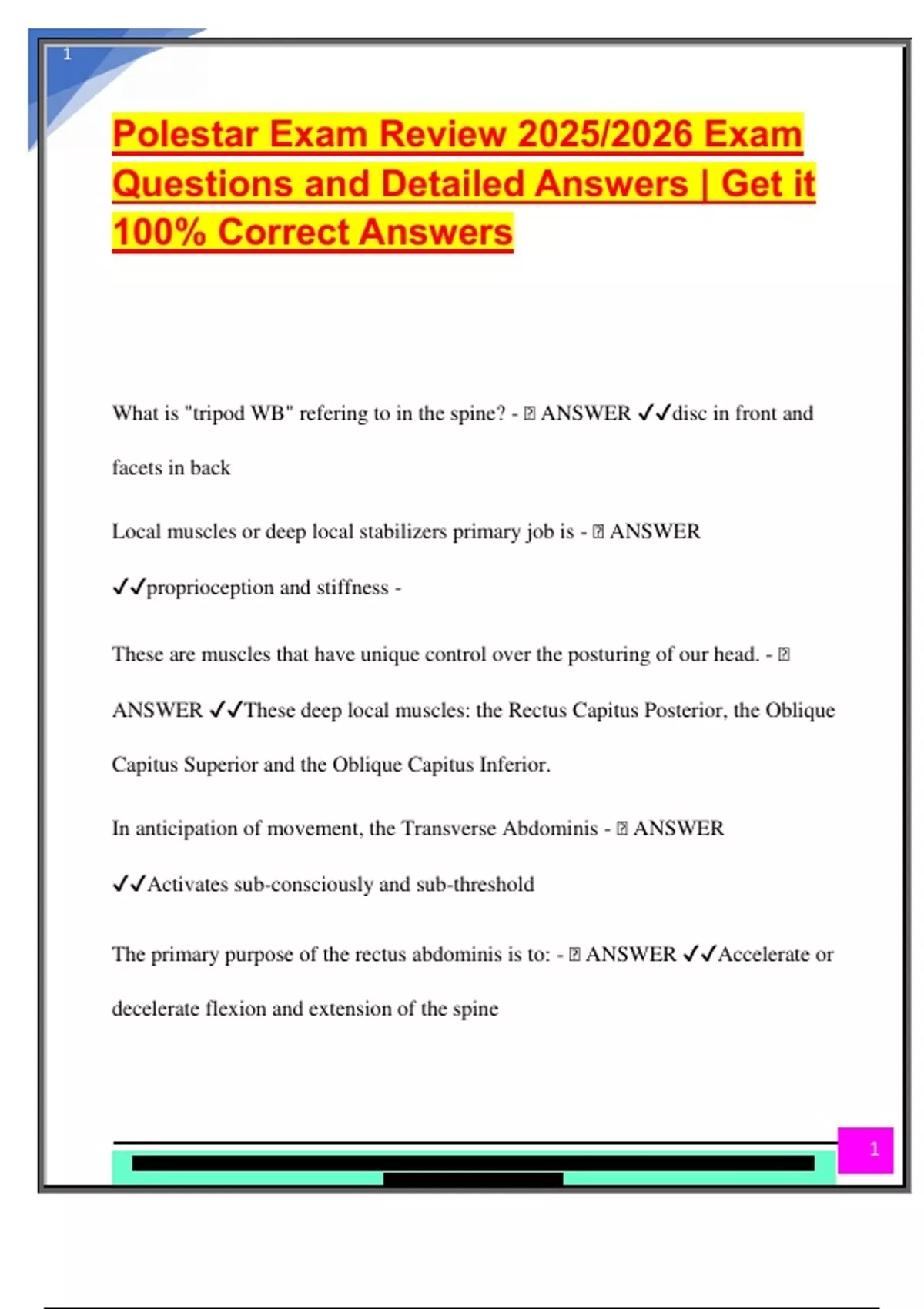 Polestar Exam Review 2025/2026 Exam Questions and Detailed Answers | Get it 100% Correct Answers
