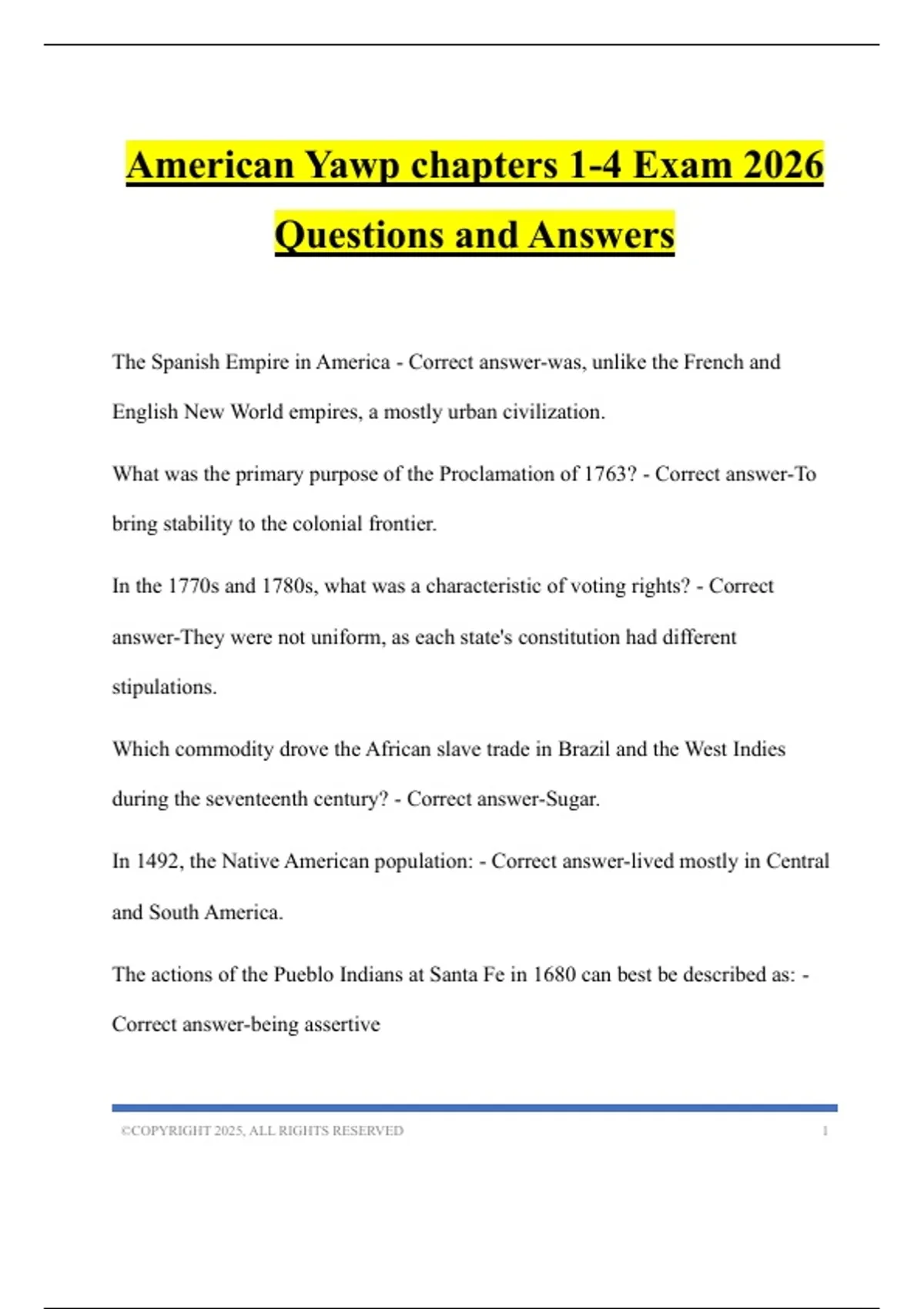 American yawp Bundled Tests 2026 Questions and Answers