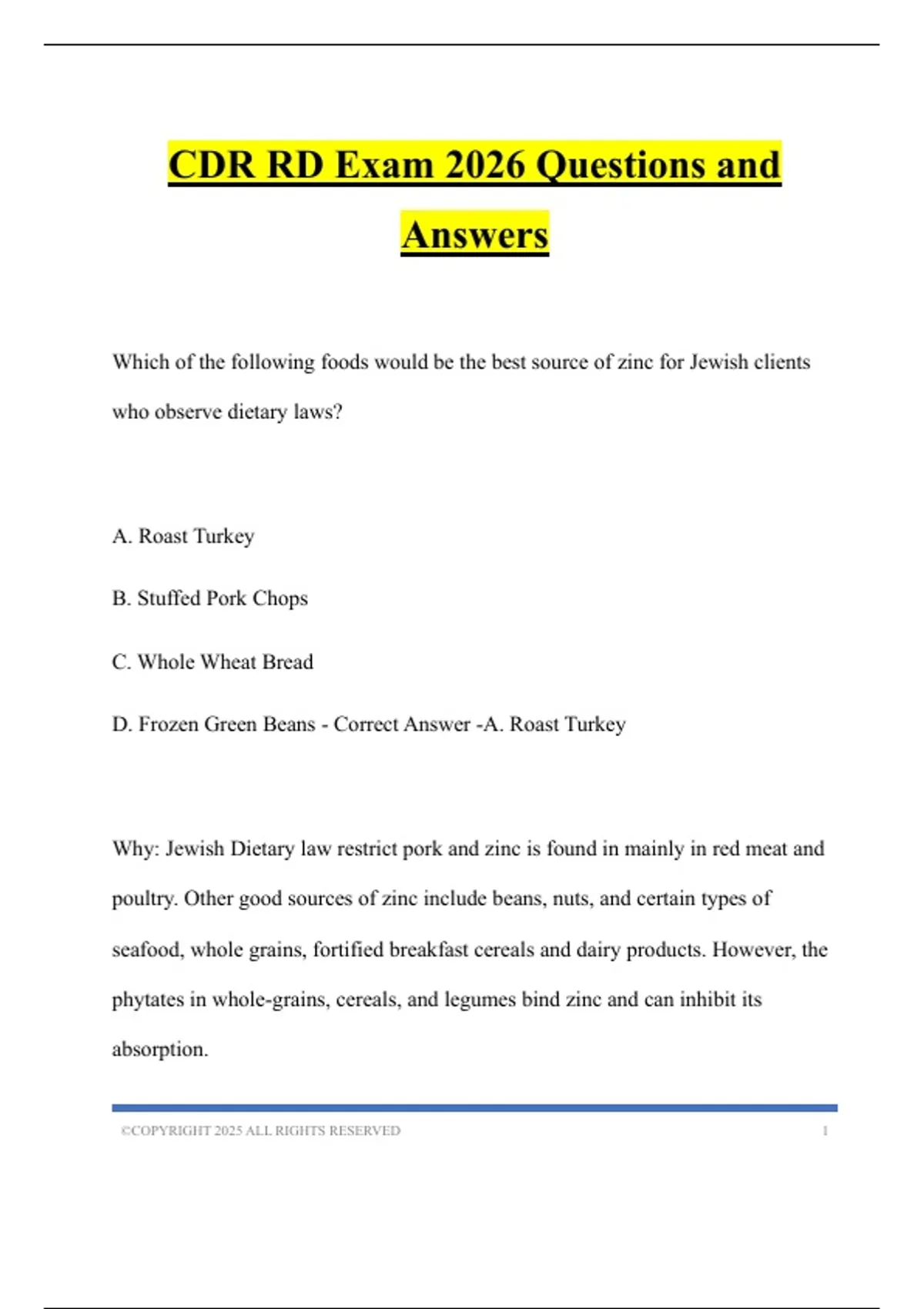 RD Exam Practice Test 1 Exam 2026 Questions and Answers