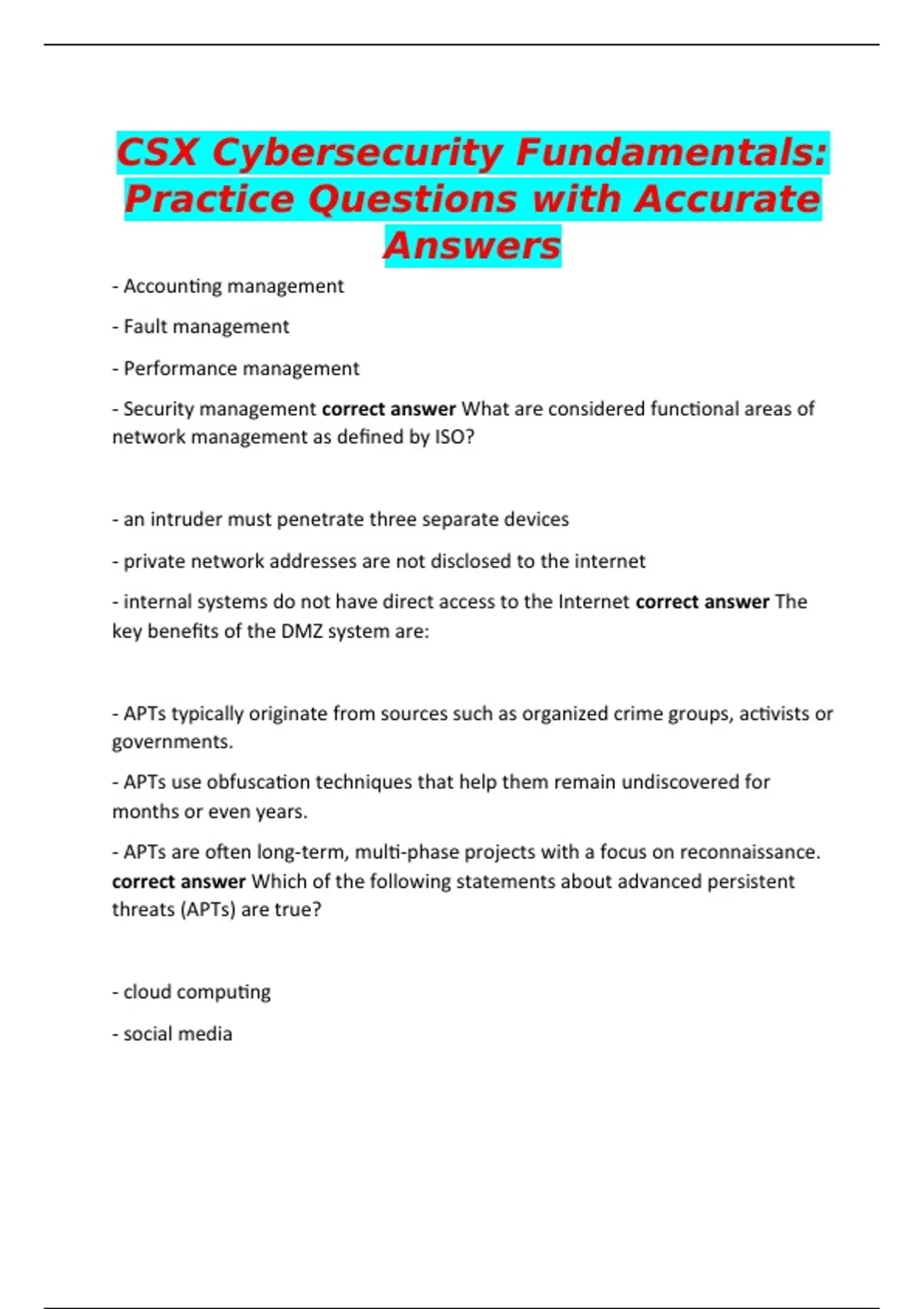 CSX Cybersecurity Fundamentals: Practice Questions with Accurate Answers